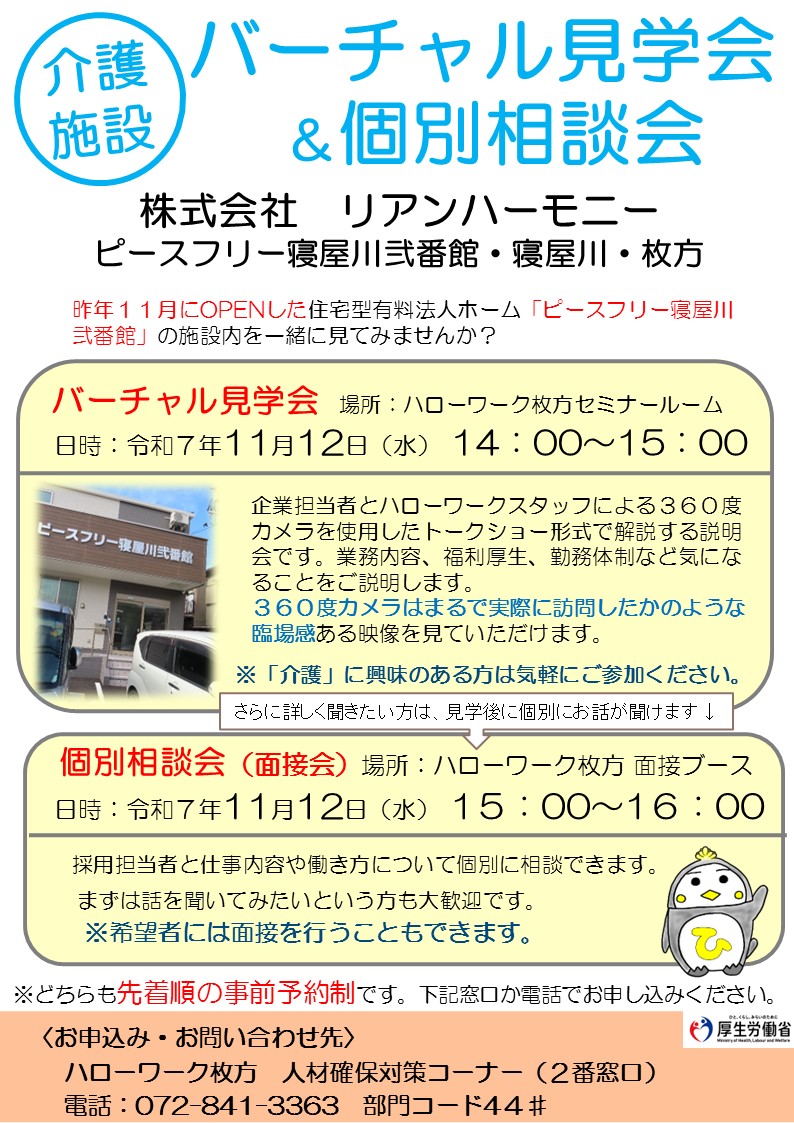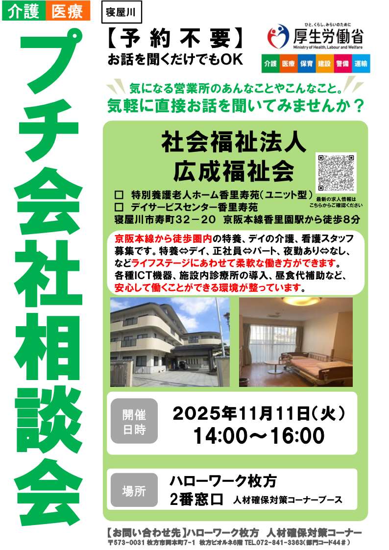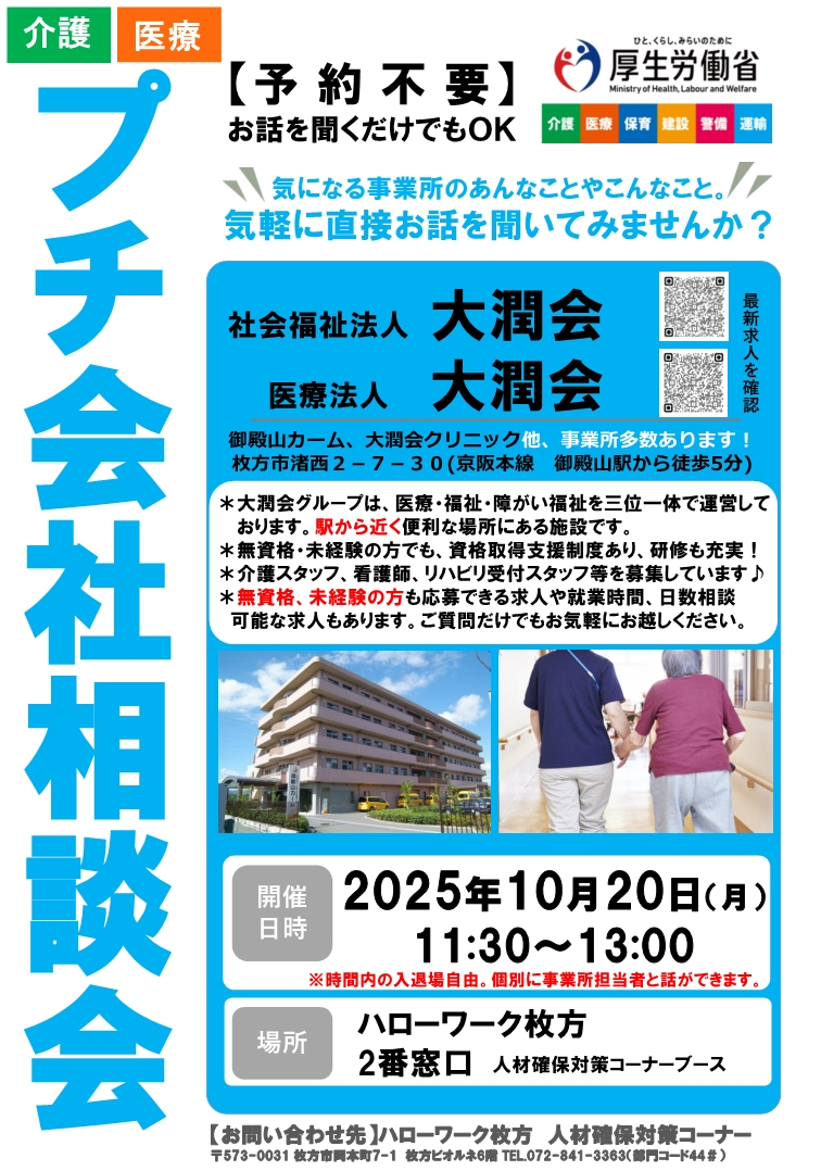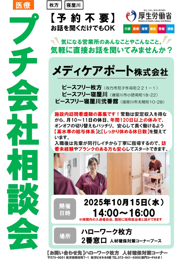 令和7年10月15日(水) 14:00~16:00 キャリアアップ面接会 ![]() リーフレットはこちら |