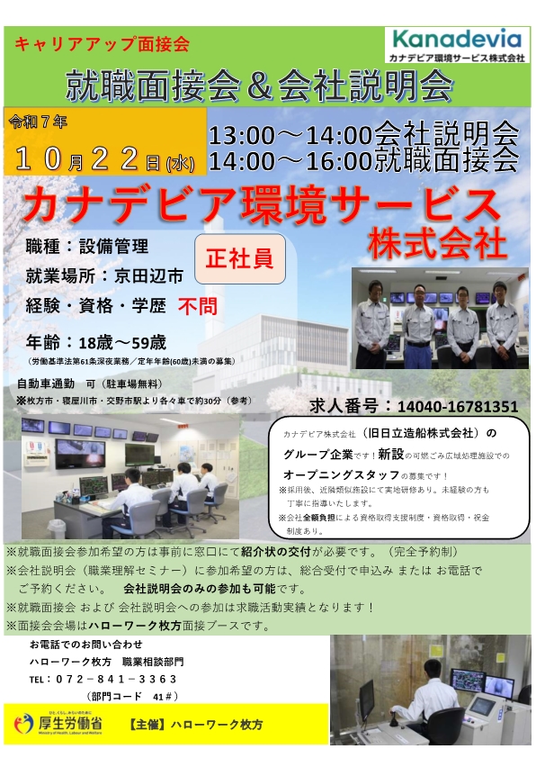 カナデビア環境サービス 株式会社 | 【正社員】 ・設備管理 (京田辺市) (14040-16781351) |