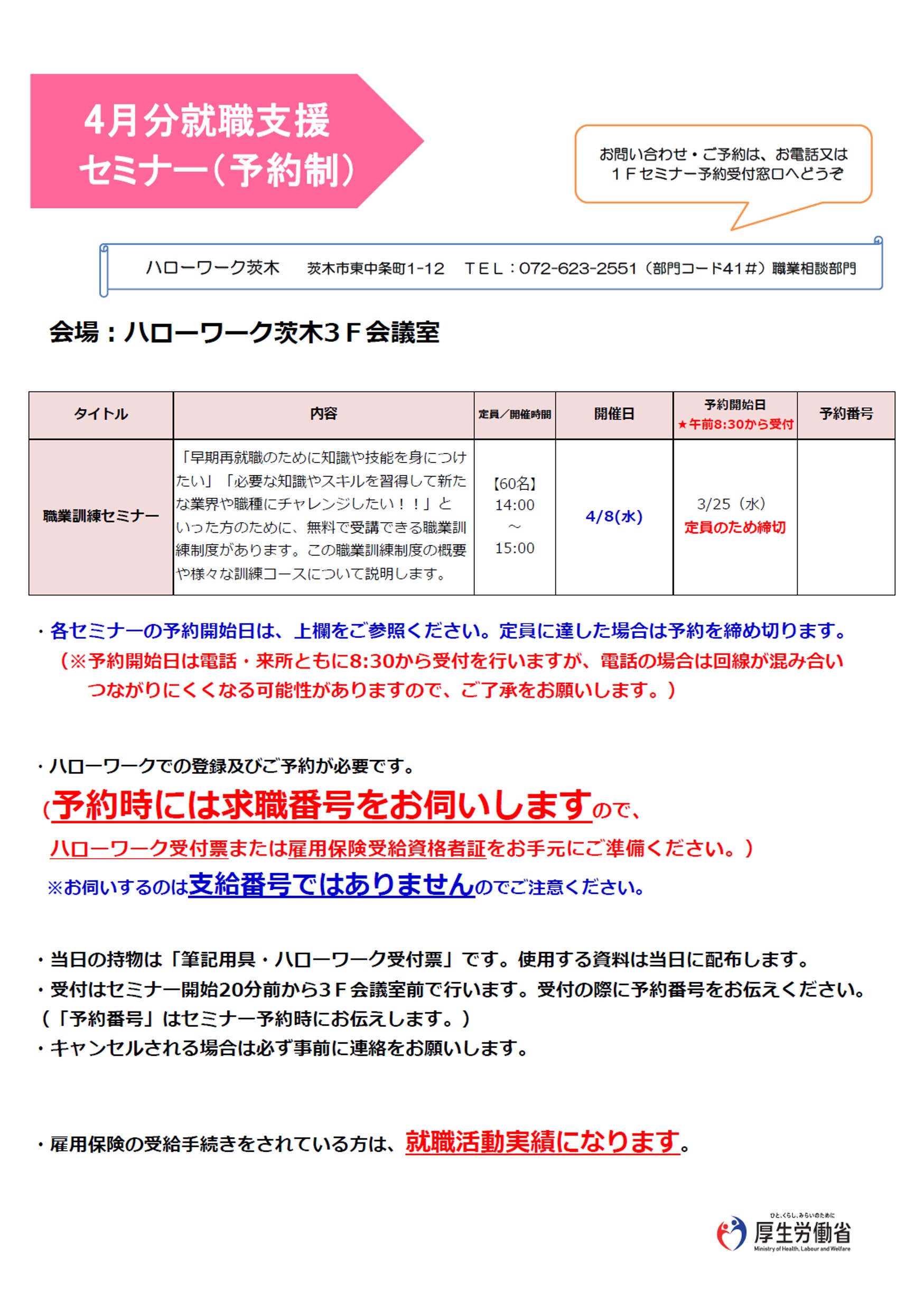 就職支援セミナーのご案内