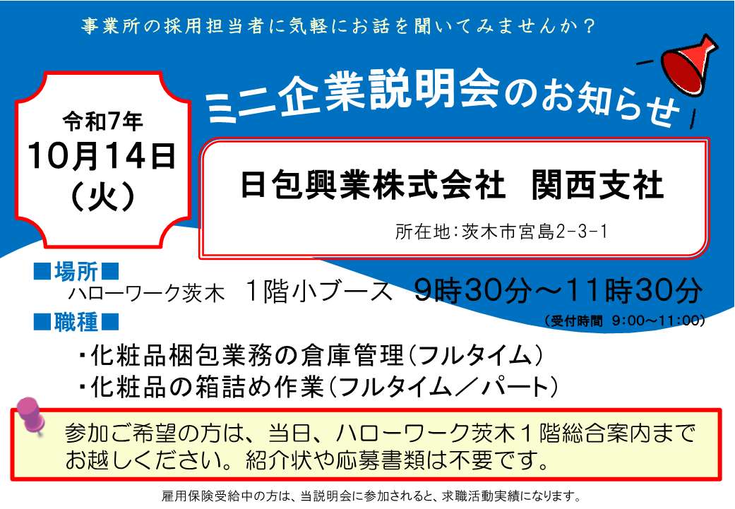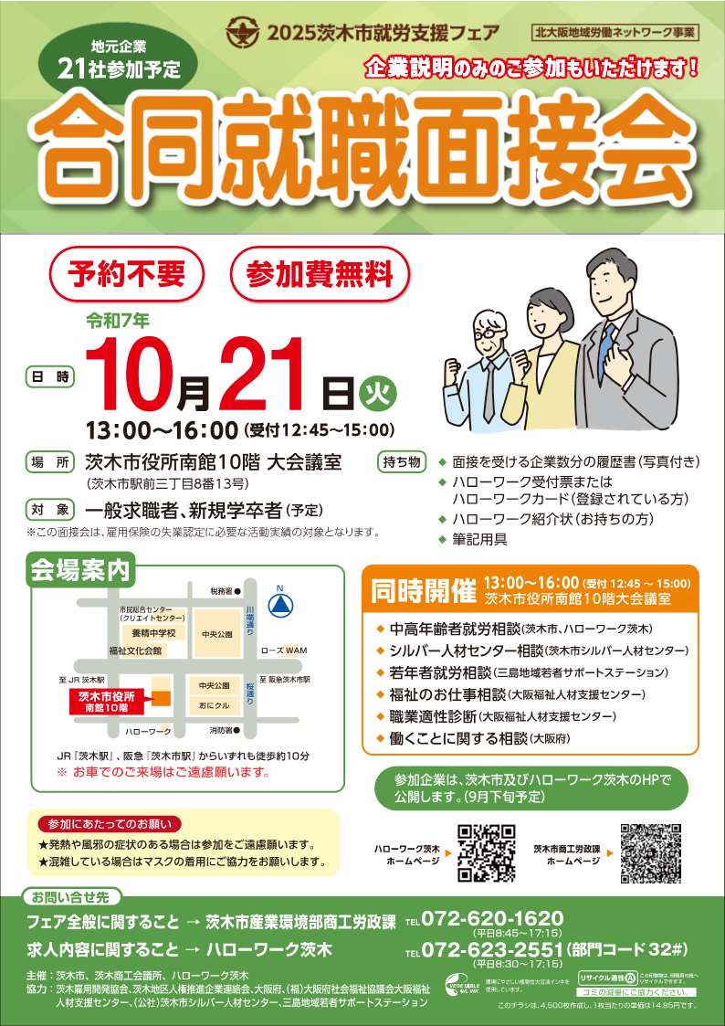 令和7年10月21日(火)茨木市就労支援フェア合同就職面接会を開催いたします。
