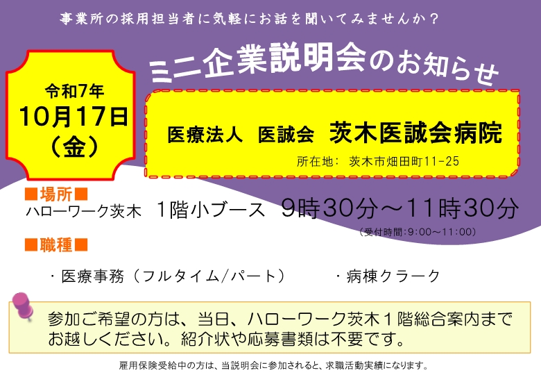 10/17(金)医療法人医誠会 茨木医誠会病院