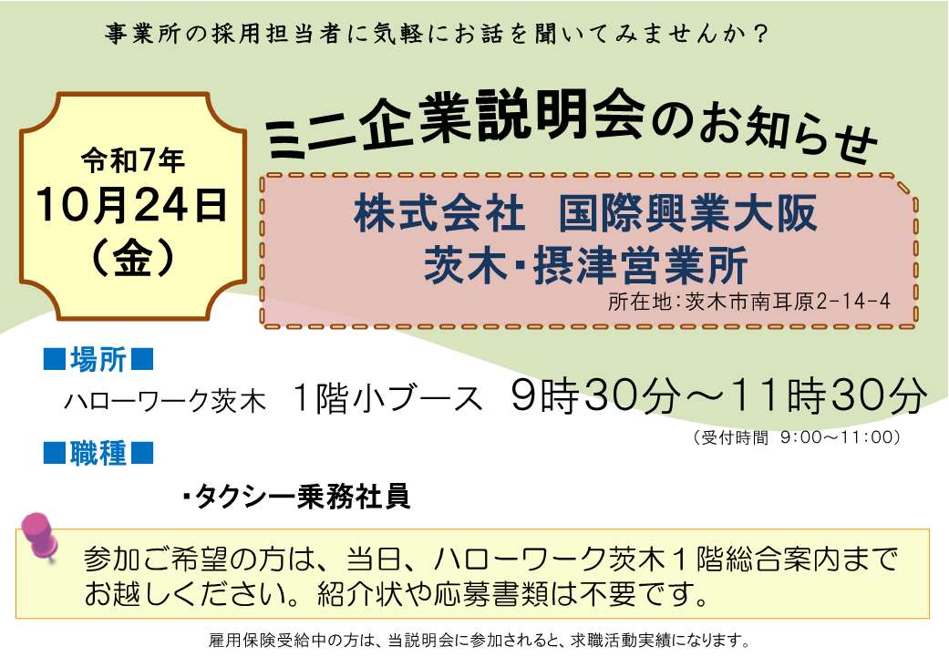 10/24(金)株式会社 国際興業大阪 茨木・摂津営業所