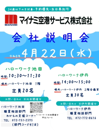 【マイナミ空港サービス株式会社】説明会/面接会のご案内