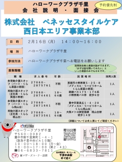 2026年1月30日 令和8年2月16日(月)会社説明・面接会を開催いたします。