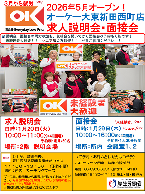2026年5月オープン!オーケー大東新田西町店 求人説明会・面接会