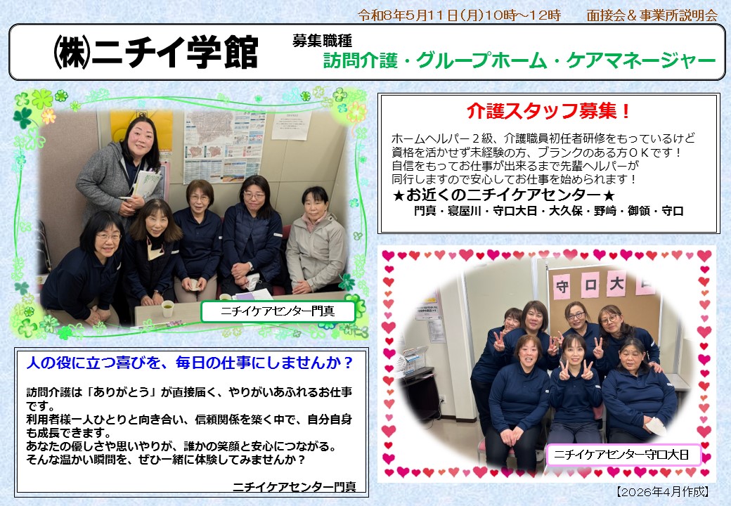 ○ホームヘルパー訪問介護 ニチイ門真