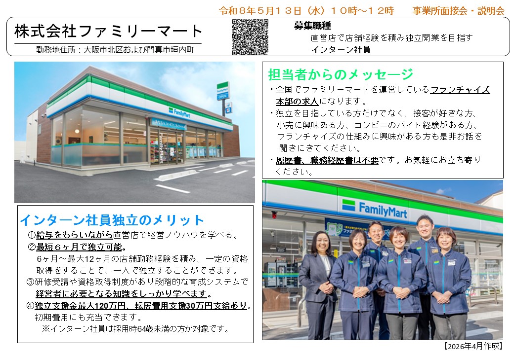 ミニ面接会等のイベント情報【ハローワーク門真】