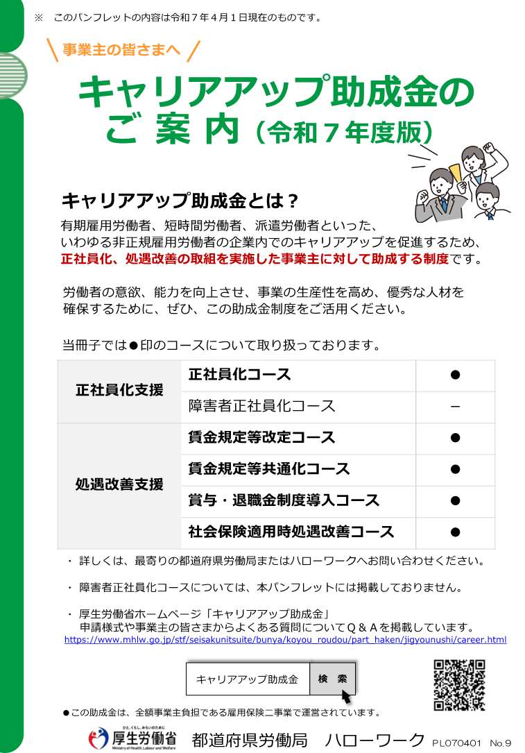 有期雇用労働者、短時間労働者、派遣労働者といったいわゆる非正規雇用の労働者(以下、「有期雇用労働者等」という。)の企業内でのキャリアアップを促進するため、正社員化、処遇改善の取組を実施した事業主に対して助成するものです。