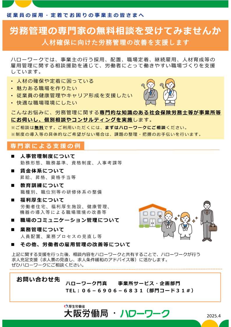 労務管理の専門家への無料相談を受けてみまんせんか