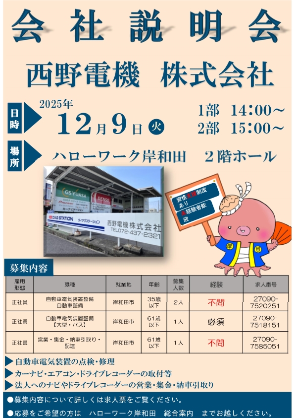 ハローワーク岸和田で開催する就職面接会・会社説明会のご案内です。情報は随時更新しています。