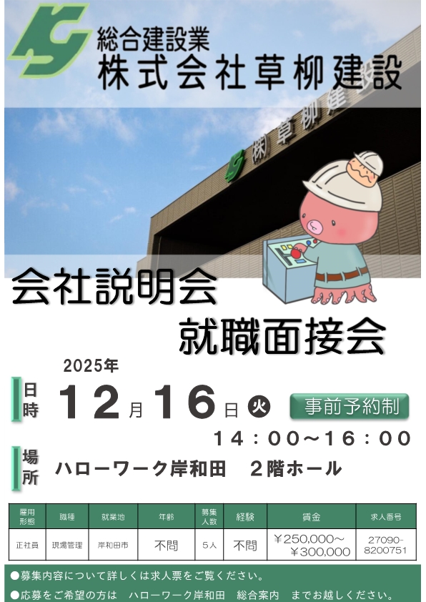 ハローワーク岸和田内で企業の人事担当者と直接面談できる絶好の機会です。ぜひご参加ください!