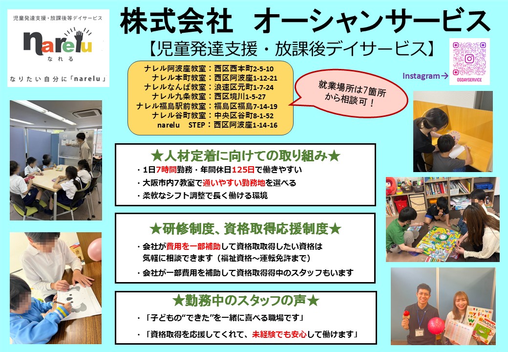 ナレル阿波座教室・本町教室・なんば教室・九条教室・福島駅前教室・谷町教室・narelu STEP〈西区阿波座〉の7箇所のうちいずれか
