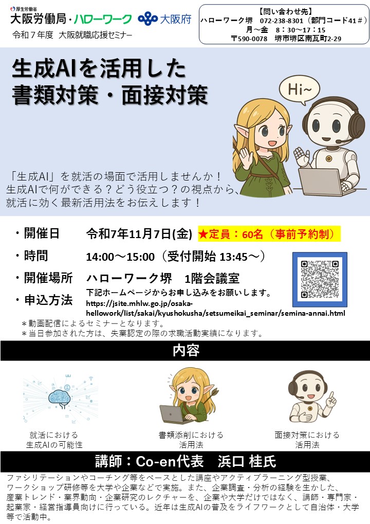 生成AIを活用した書類対策・面接対策[11/7(金)14:00]