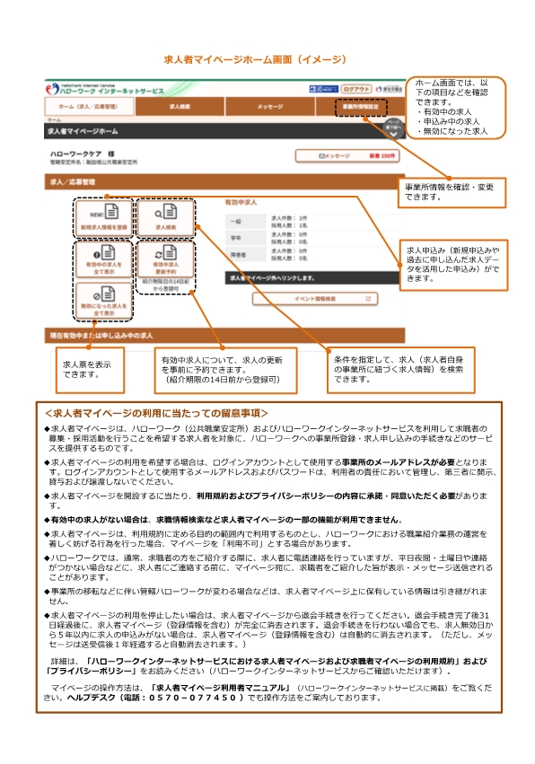 その他求人者マイページに関するご案内はハローワークインターネットサービス(求人者マイページを利用する)をご覧ください。