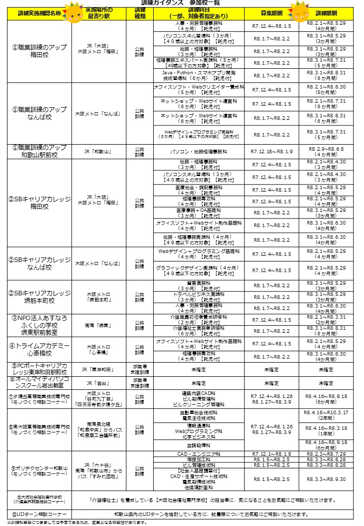 ⇒その他大阪労働局全体のハロートレーニング関連イベント情報はこちら(大阪労働局ホームページ)