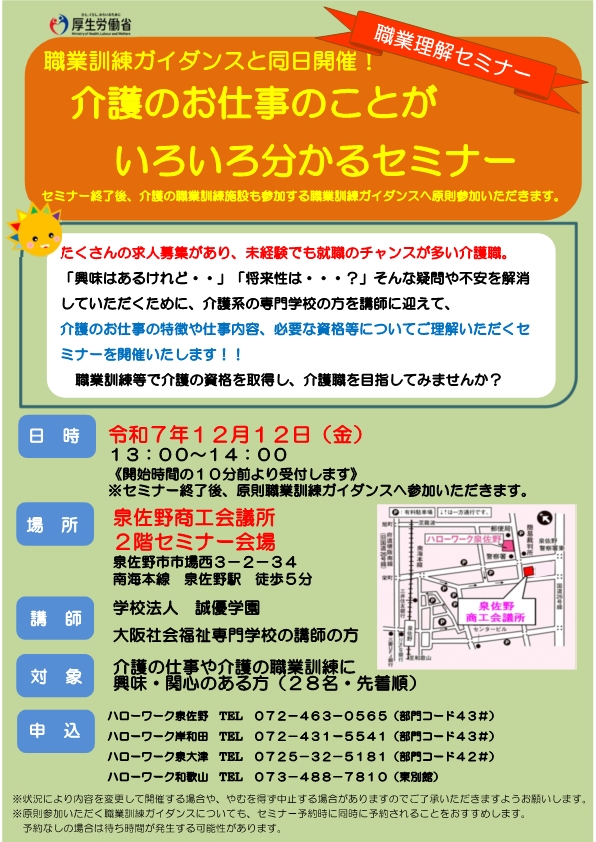 ハロートレーニングについての詳細は、ハローワーク泉佐野職業相談部門(職業訓練コーナー)072-463-0565(43#)までお問い合わせ下さい。