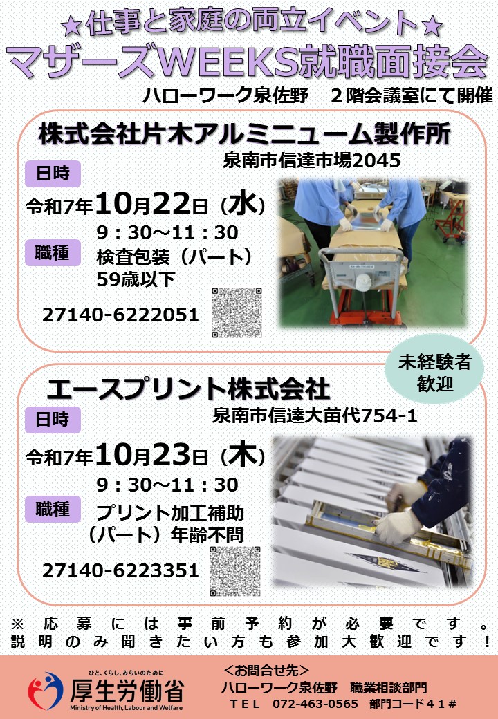 出張ハローワークin阪南市(オークワわくわくシティ尾崎店) (画像をクリックすると拡大表示します)