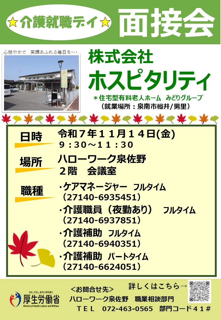 | 株式会社ホスピタリティ | 介護補助 | パート | 不問 | 不問 | 27140-6624051 |