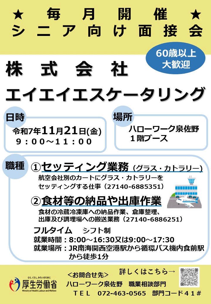 | 株式会社エイエイエスケータリング | 食材等の納品や出庫作業 | (正社員以外) パートナー |