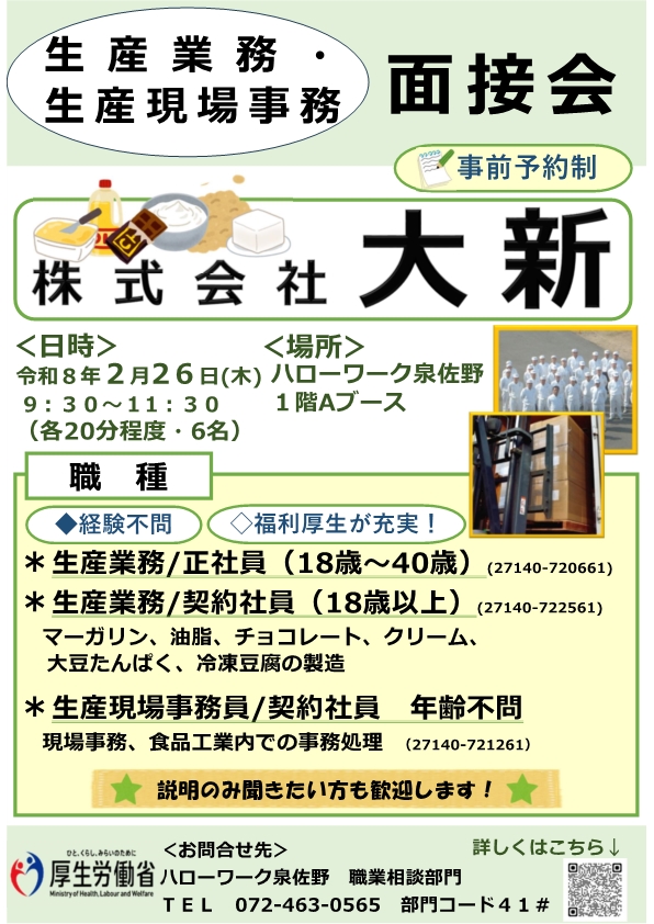| 生産業務 | 契約社員 | 18歳以上 | 普通自動車運転免許あれば尚可 | 27140-722561 |