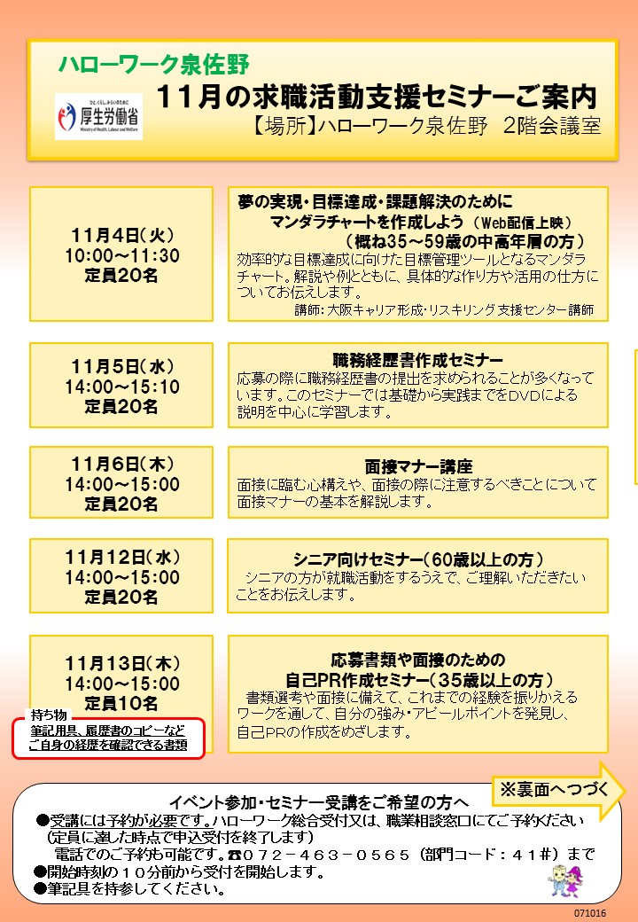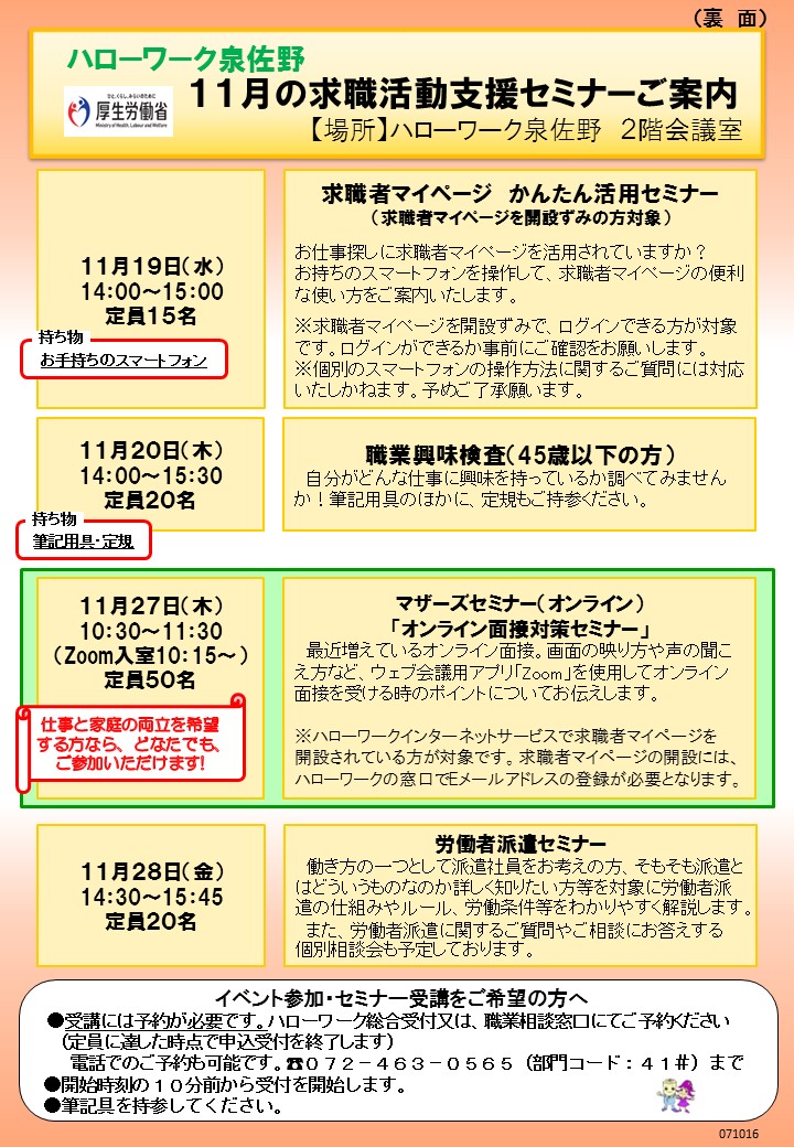 (画像をクリックすると拡大表示します)11月求職活動支援セミナー