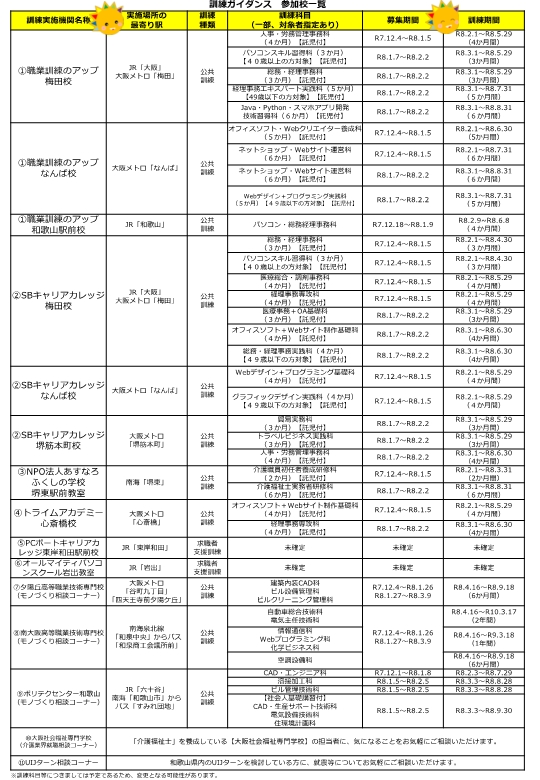 ⇒公的職業訓練(ハロートレーニング)の詳細はこちら(公的職業訓練ページへリンクします。)