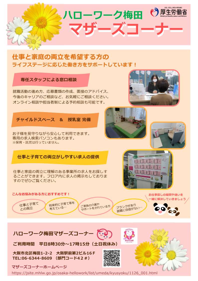 🔷ハローワーク梅田マザーズコーナーのリーフレットはこちらをクリックしてください。