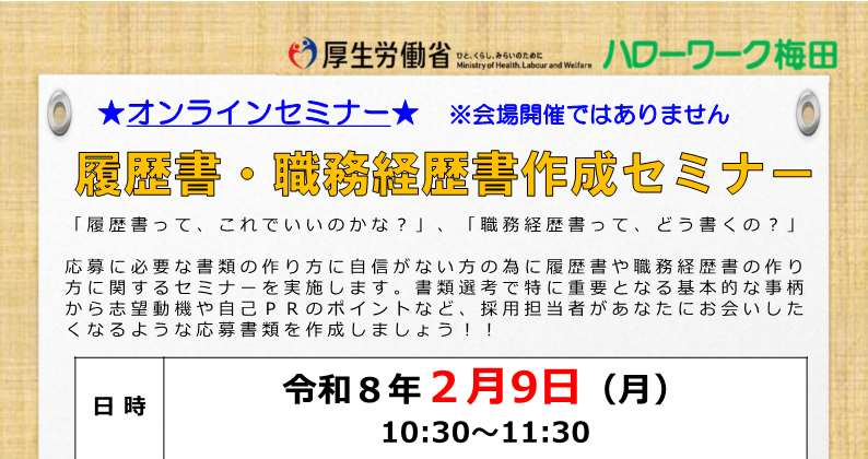履歴書・職務経歴書作成セミナー(オンラインセミナー)