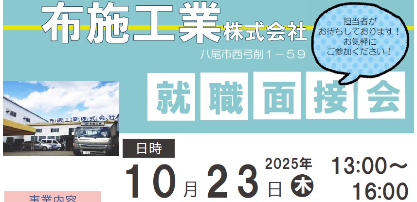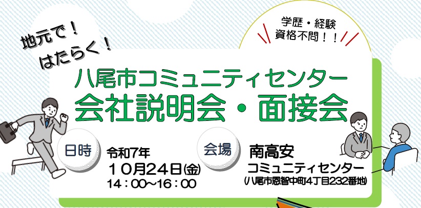 詳細はコチラ10/24(金)八尾市コミュニティセンター会社説明会・面接会