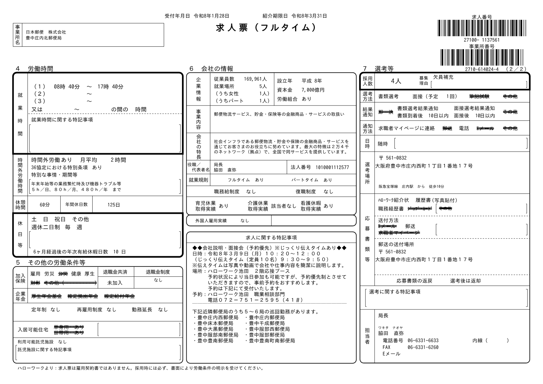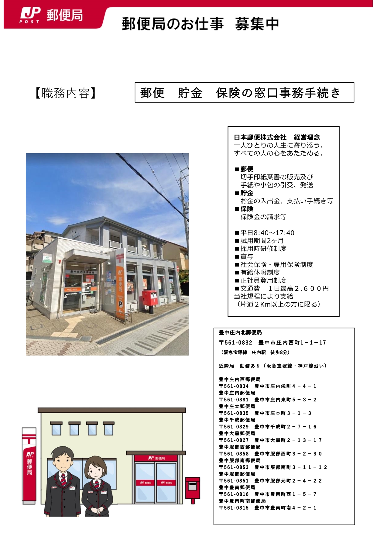 企業ホームページ:日本郵便株式会社 豊中庄内北郵便局 ホームページ