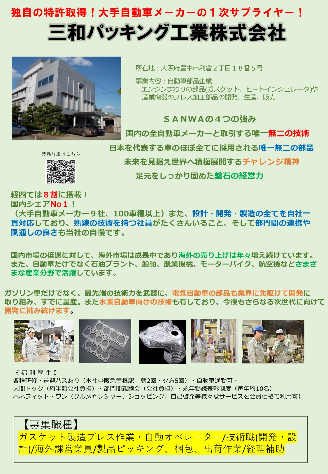 募集職種 ガスケット製造プレス作業・自動機オペレーター【正社員】