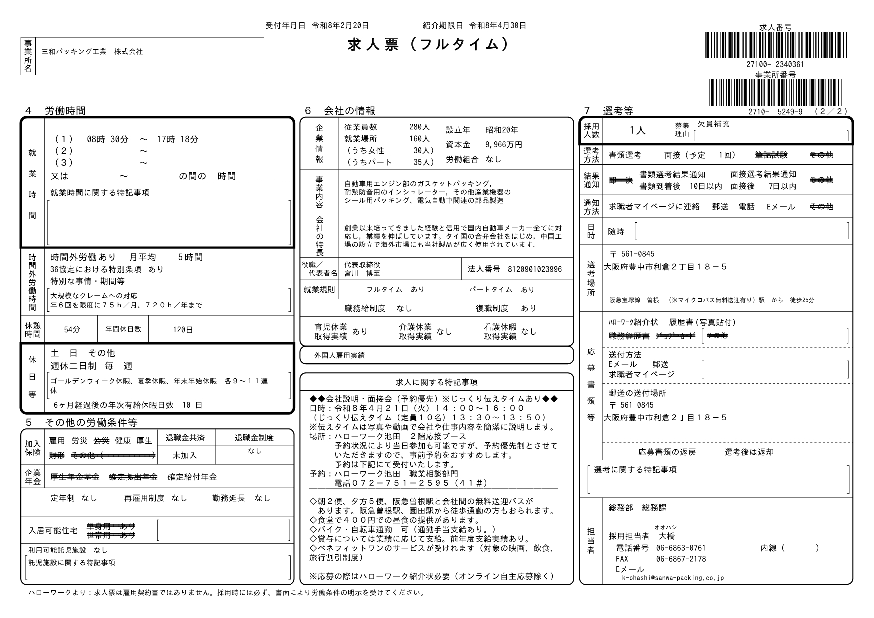 求人番号 27100-2340361