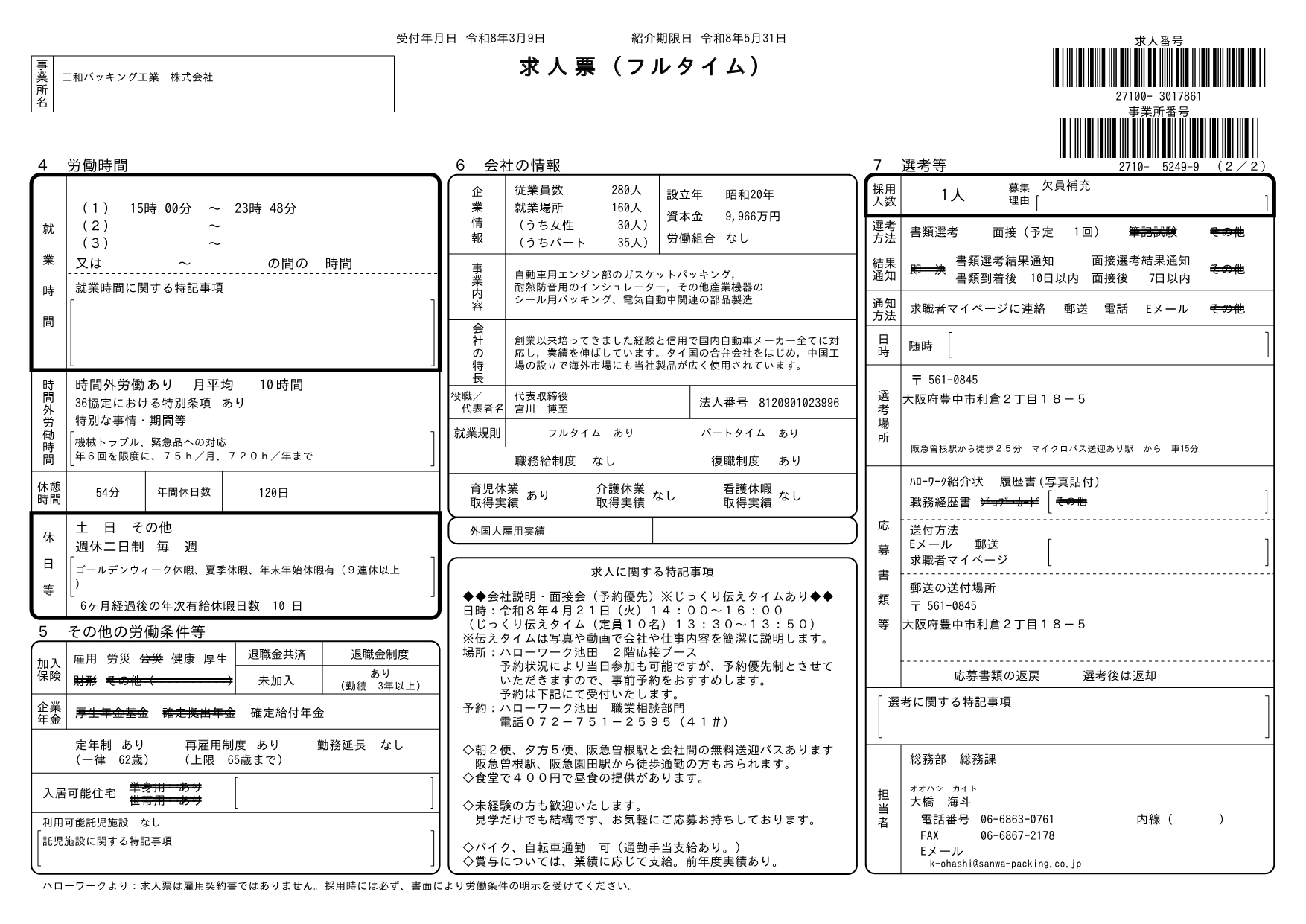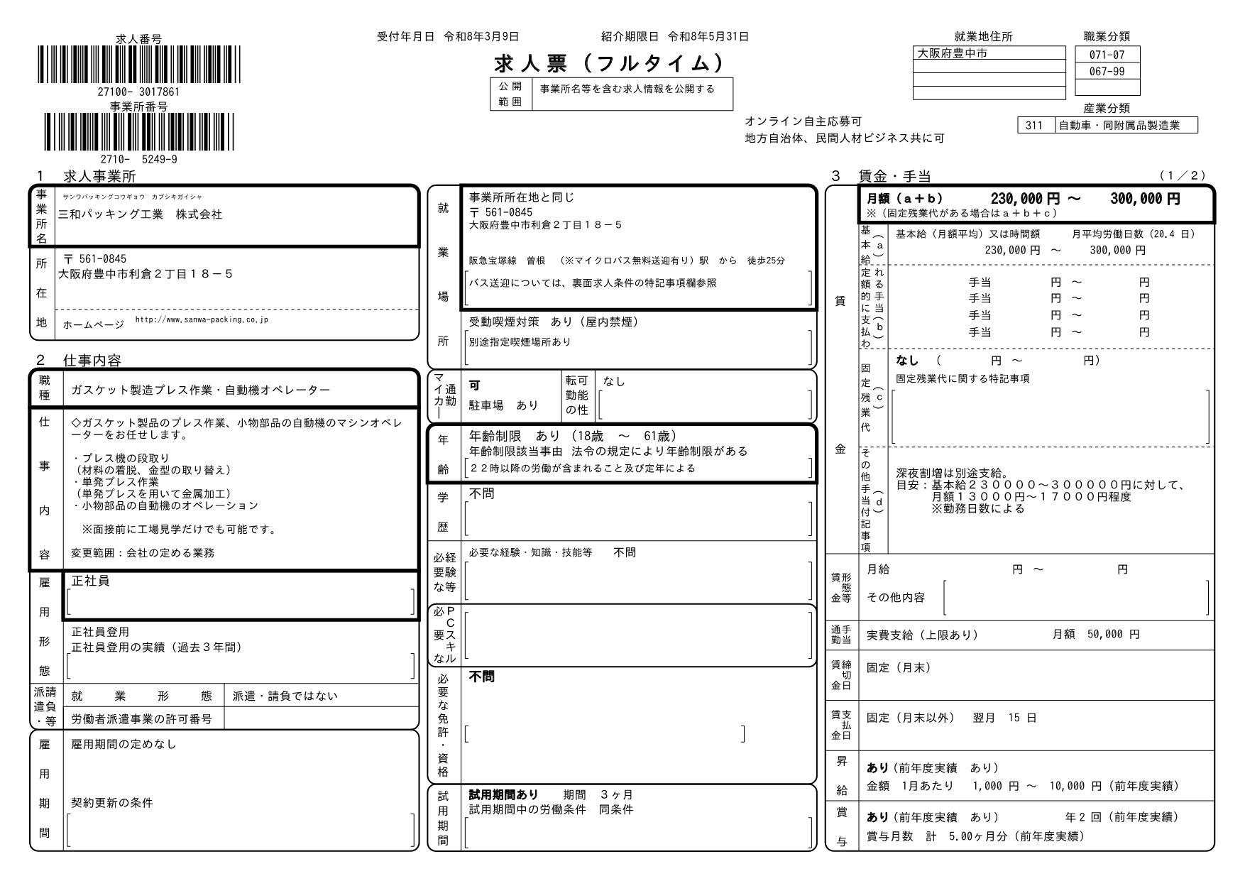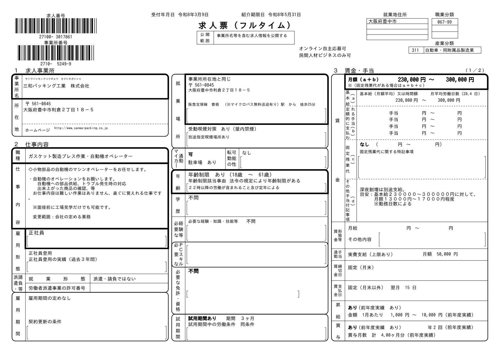 求人番号 27100-3017861