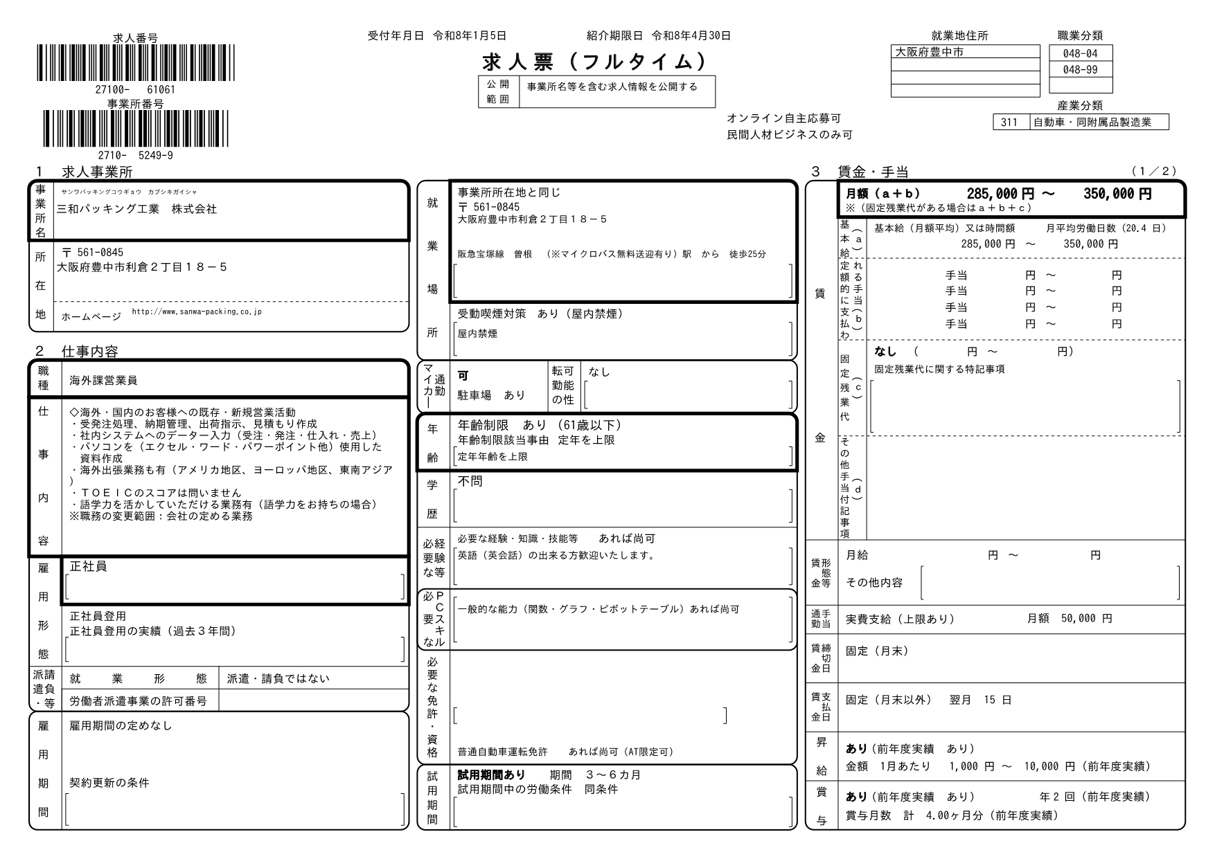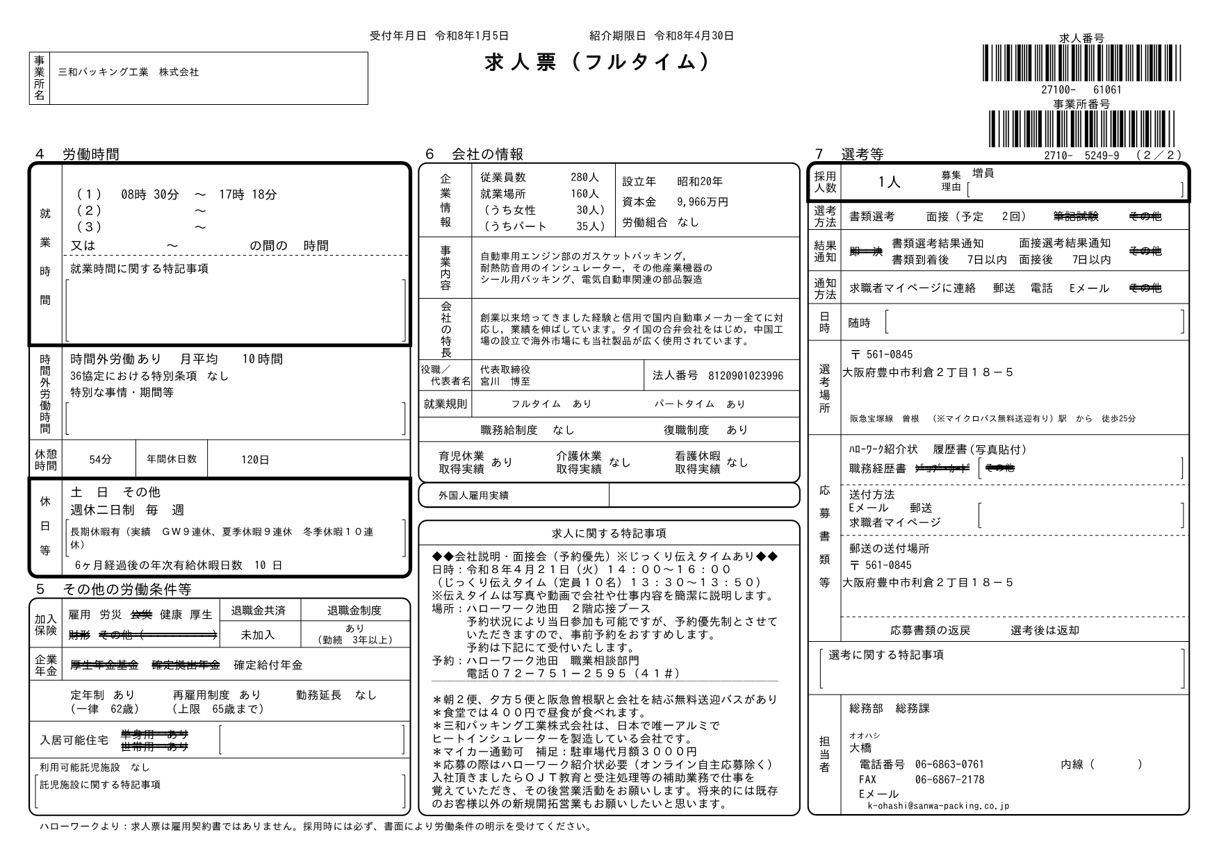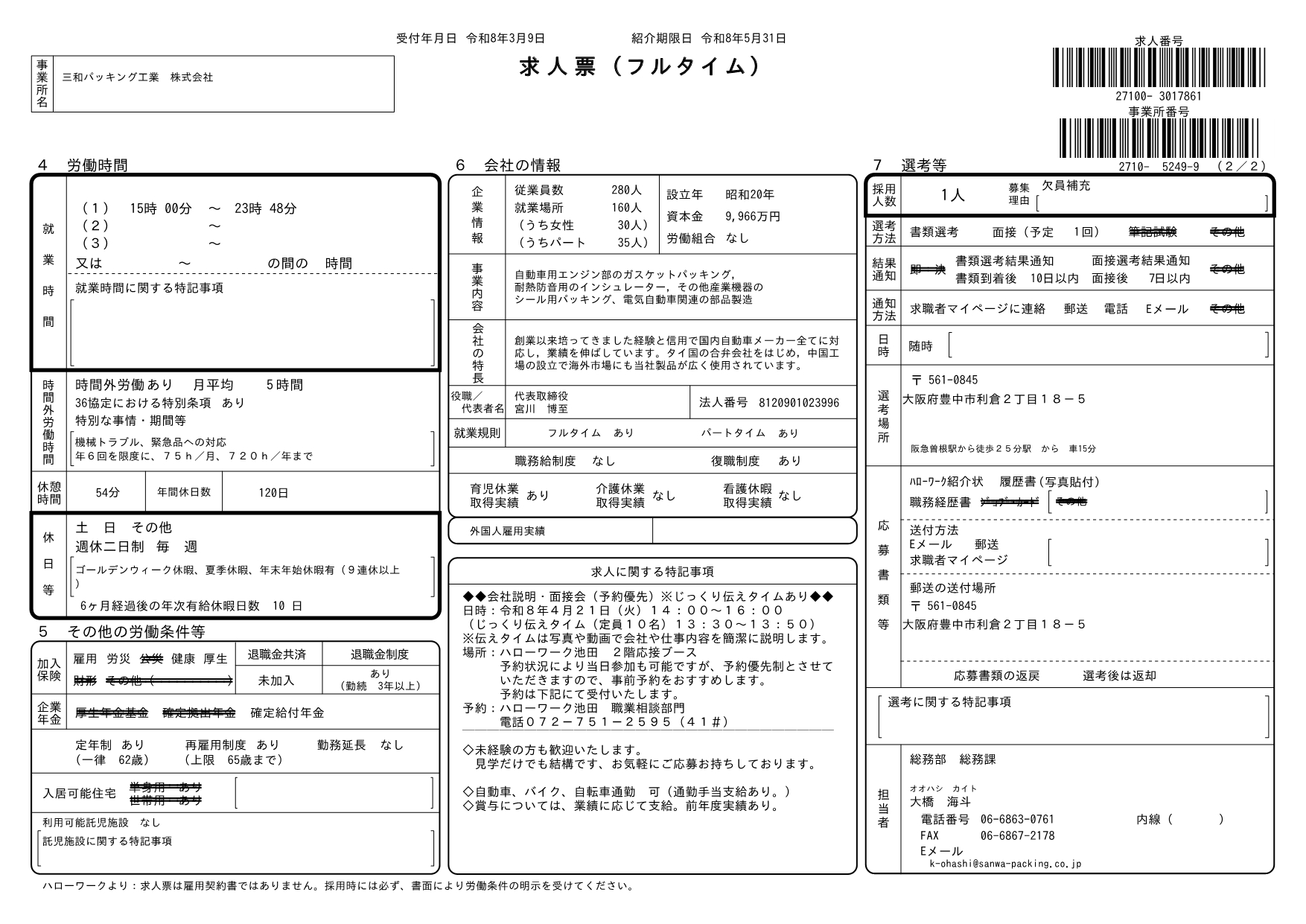 求人番号 27100-3017861