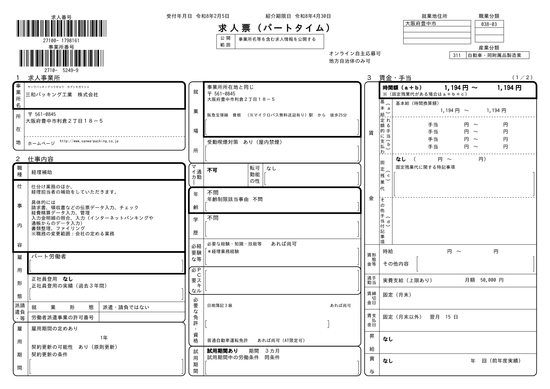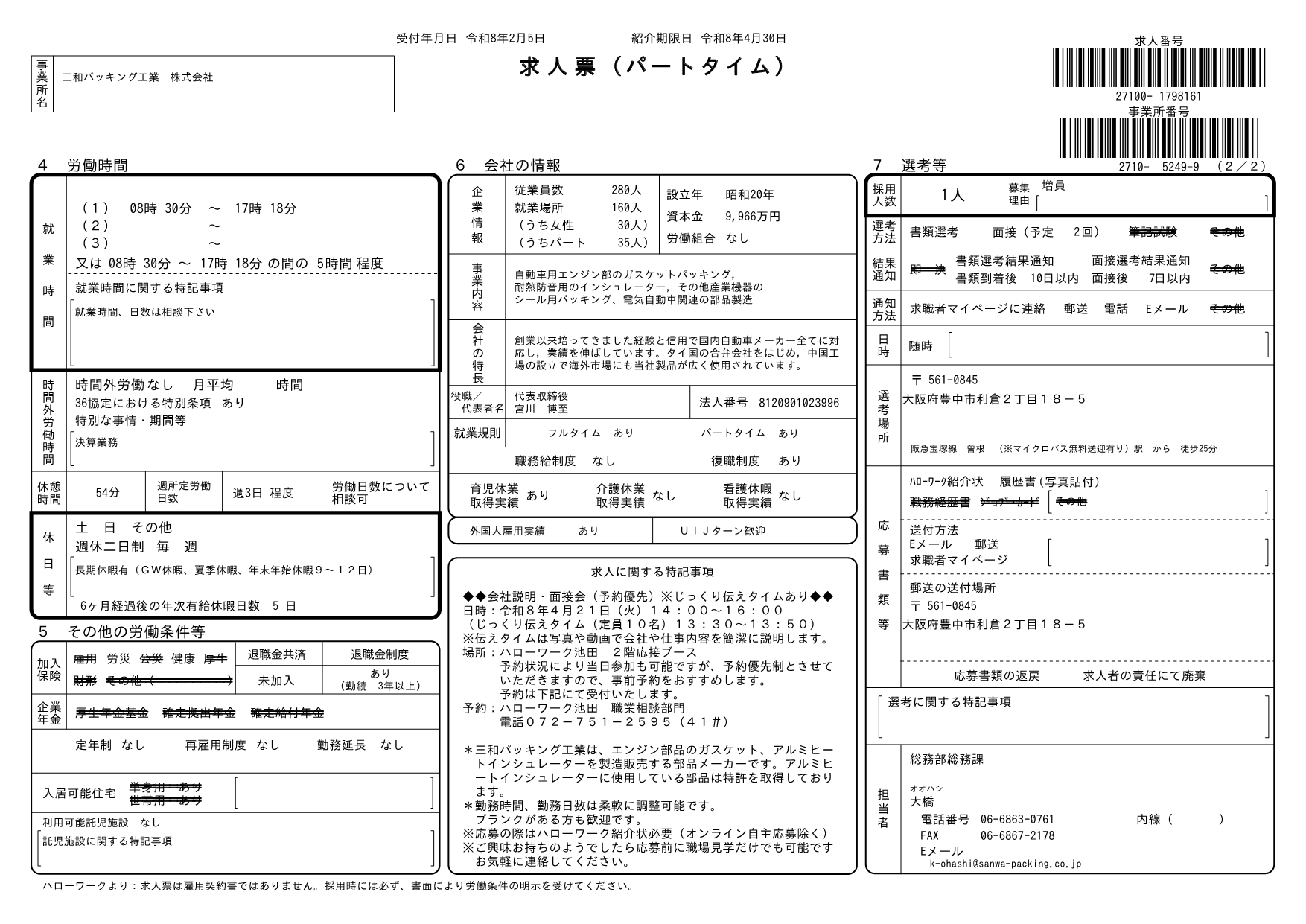 求人番号 27100-1798161