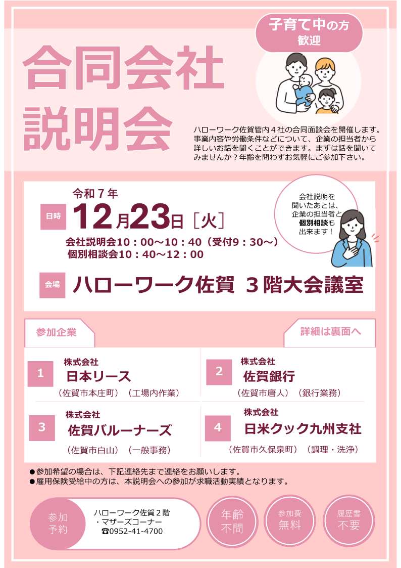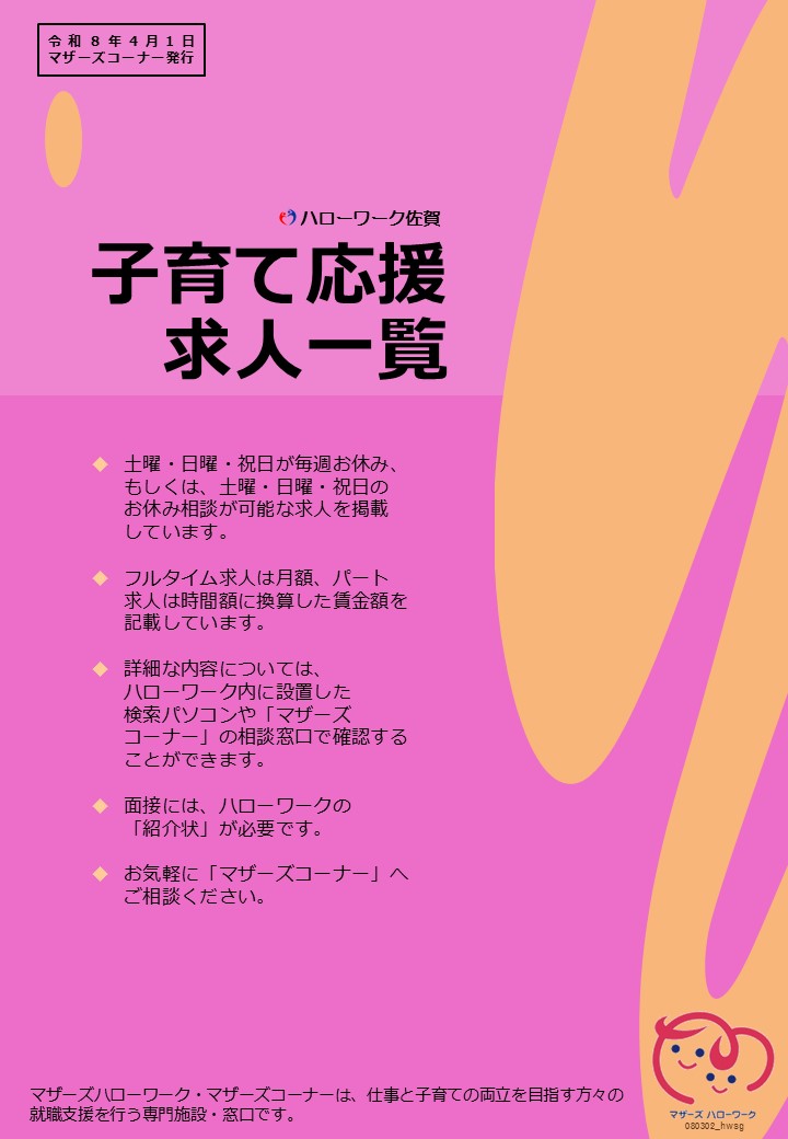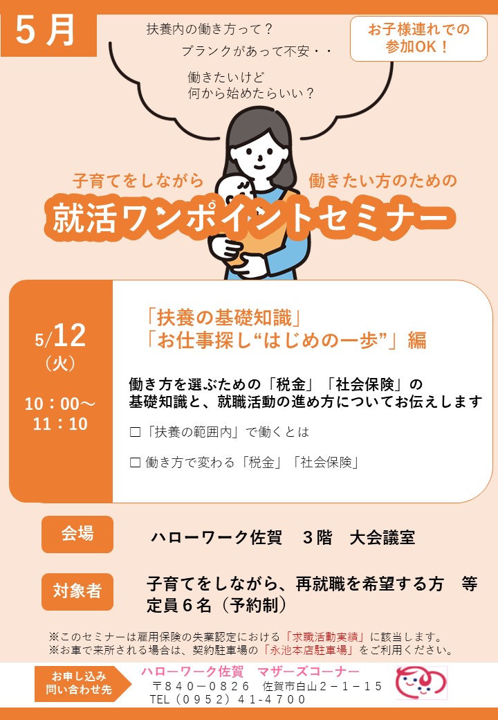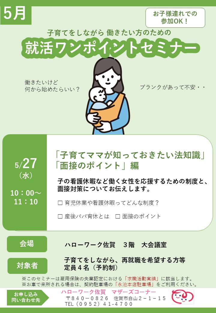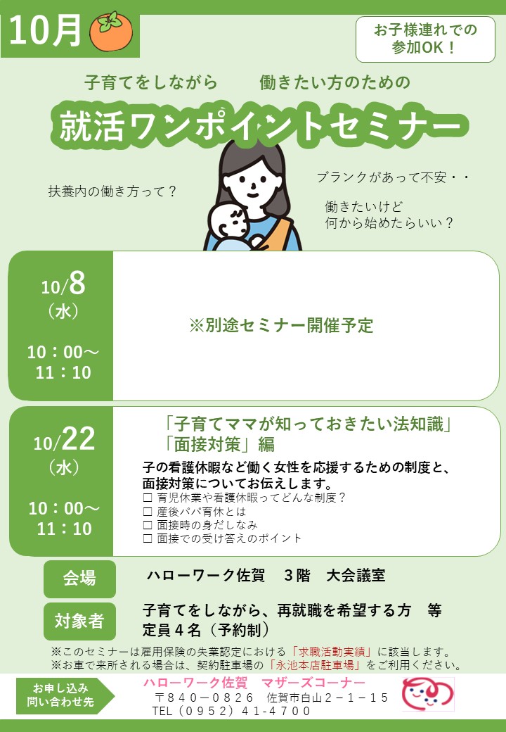 - ハローワーク佐賀マザーズコーナーからのご案内(イベント情報等)