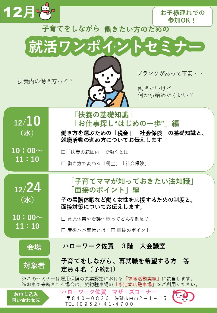 ハローワーク佐賀マザーズコーナーからのご案内(イベント情報等)