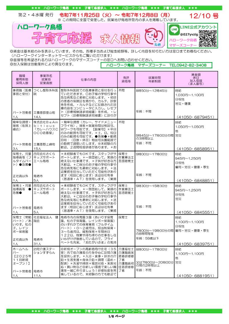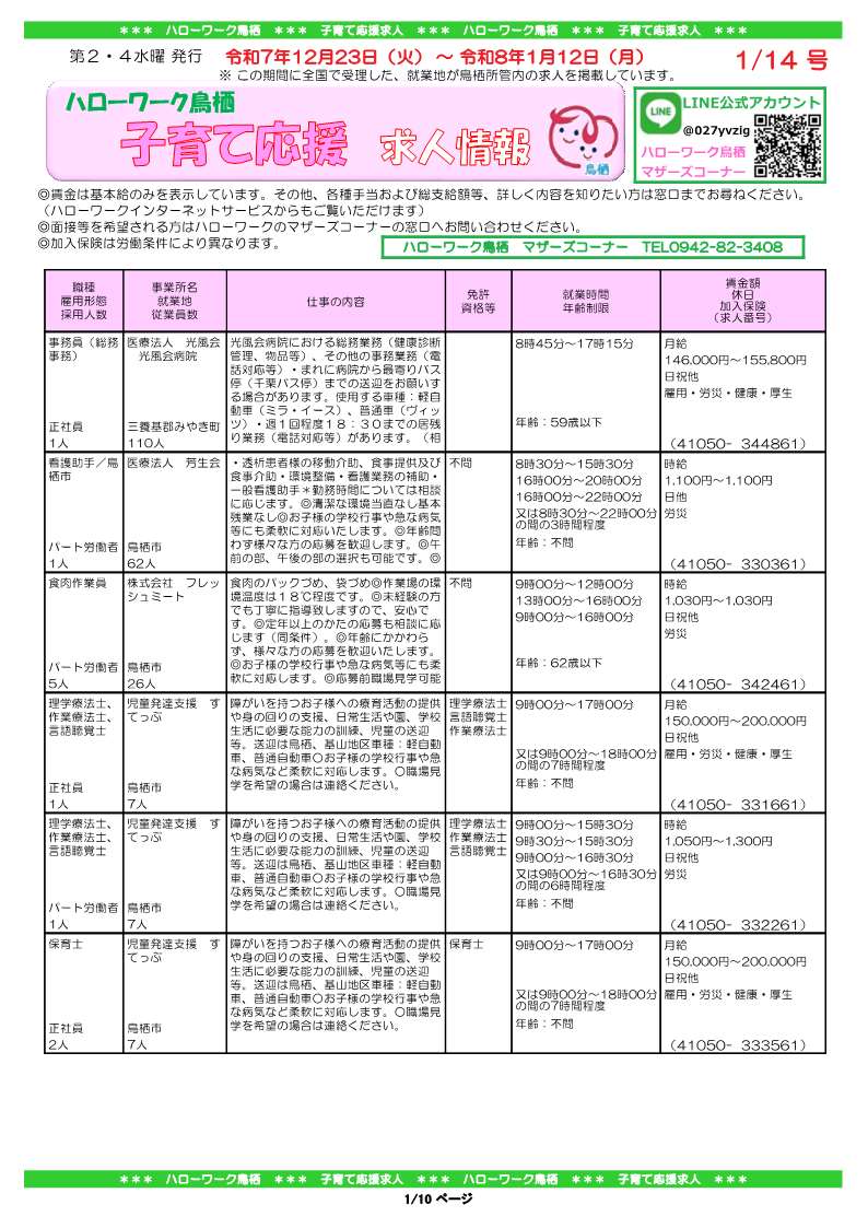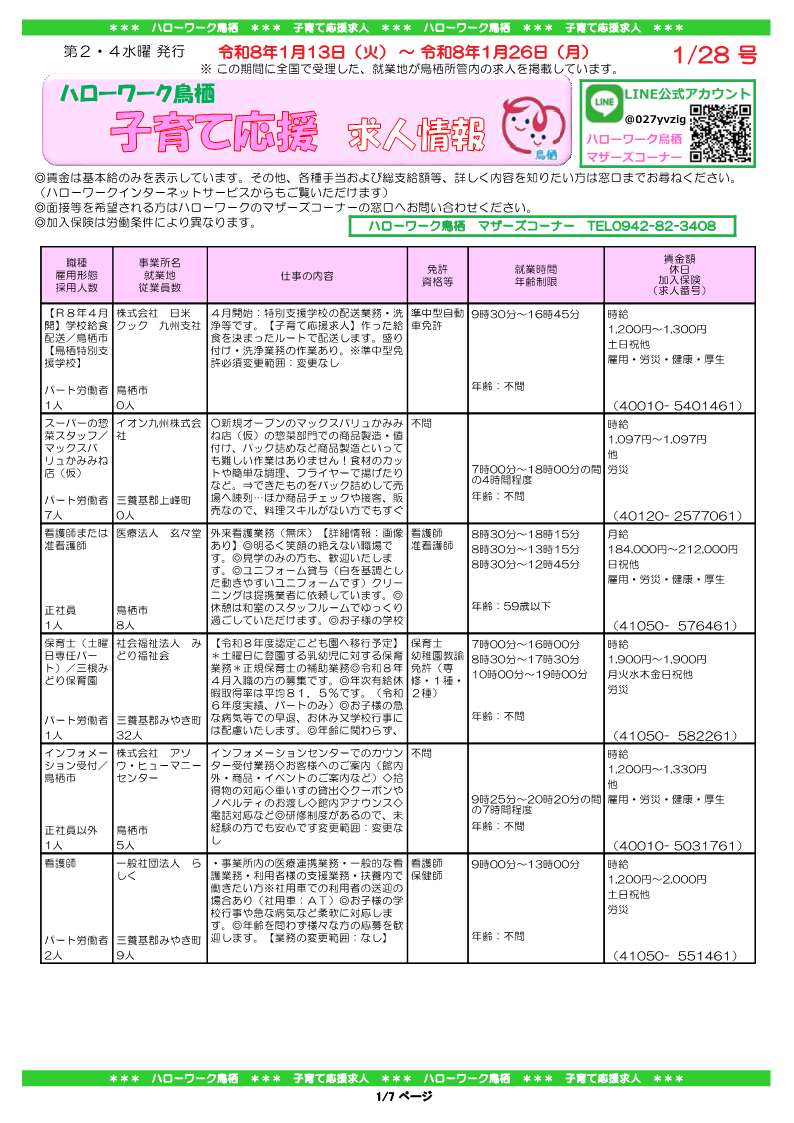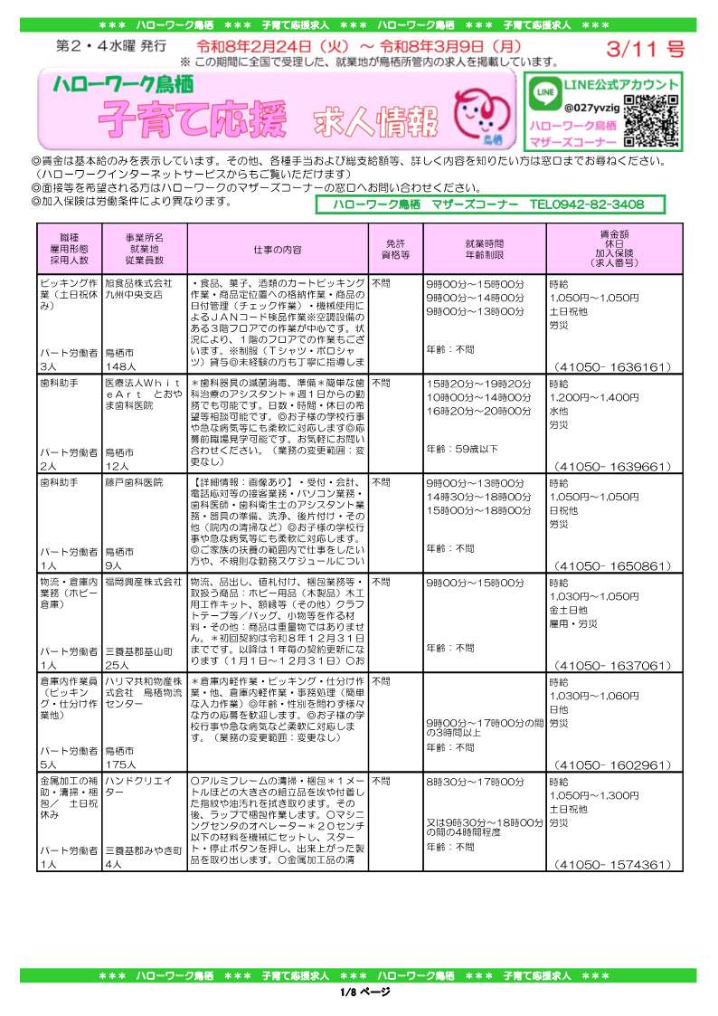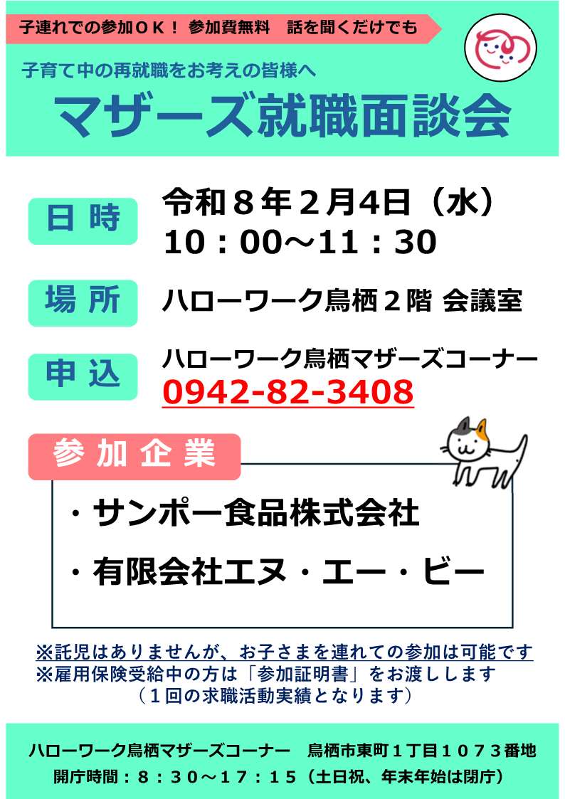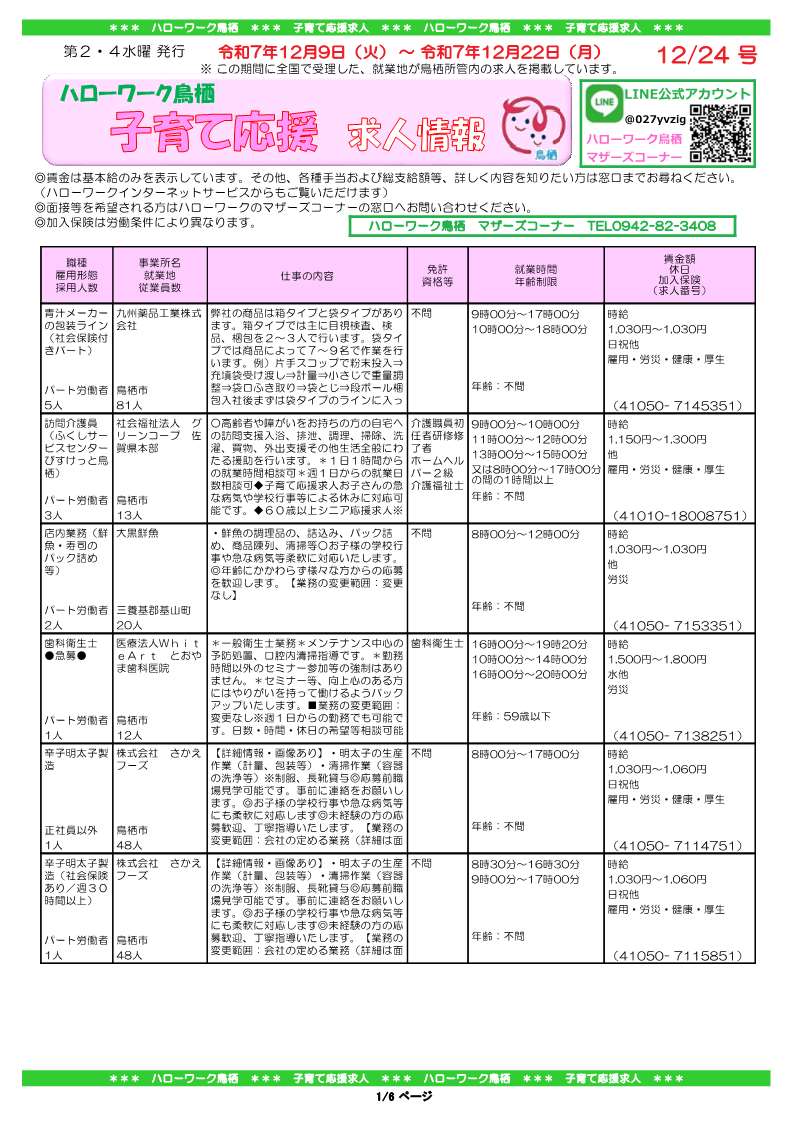 詳細はハローワーク鳥栖 マザーズコーナーへお問い合わせください。