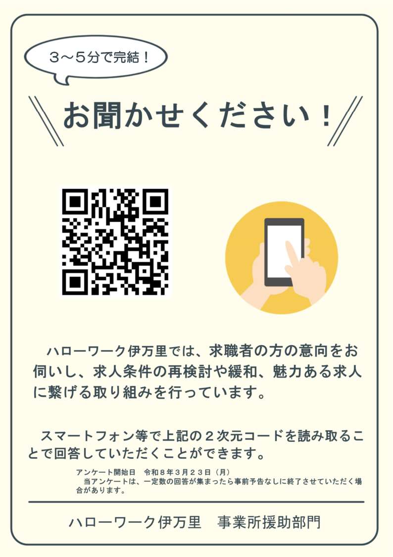 チラシの2次元コードを読み込むか、下記URLから回答をお願いします。