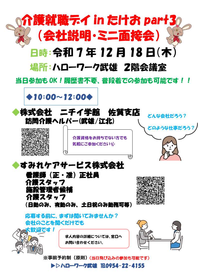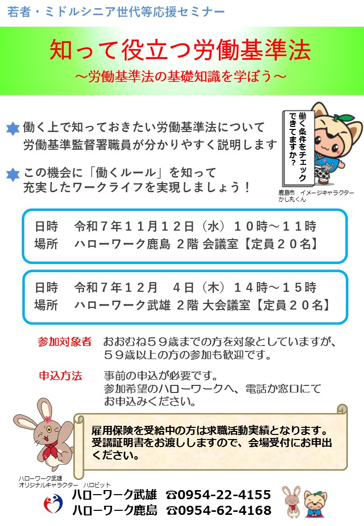 ◆ハローワーク武雄とハローワーク鹿島のどちらでも受講可能です。