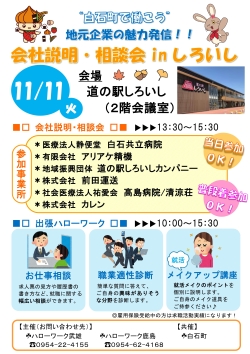 11月11日(火)に 会社説明・相談会inしろいし を開催します!