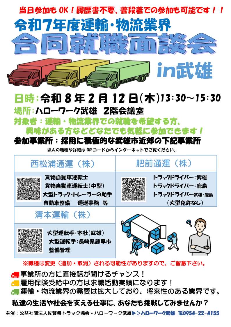 ●その他:参加希望の方はハローワーク武雄までご連絡ください(要予約)