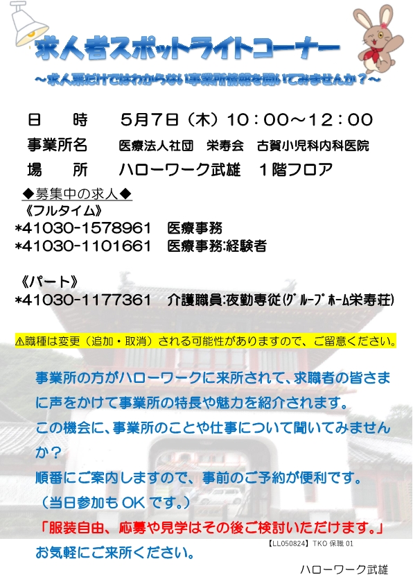 令和8年5月7日(木)に求人者スポットライトコーナーを開催します!