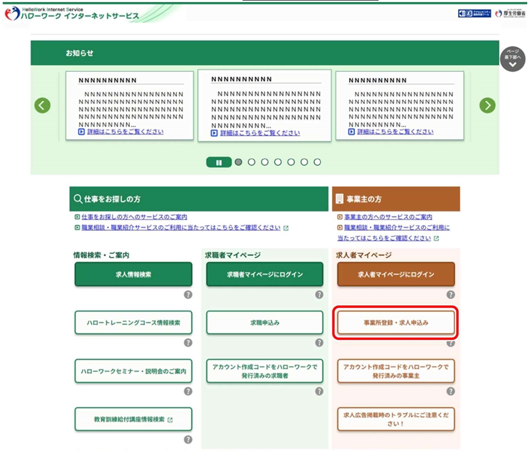 【事業所・求人情報を登録】ボタンをクリックし、事業所登録・求人申込みへ進んでください。