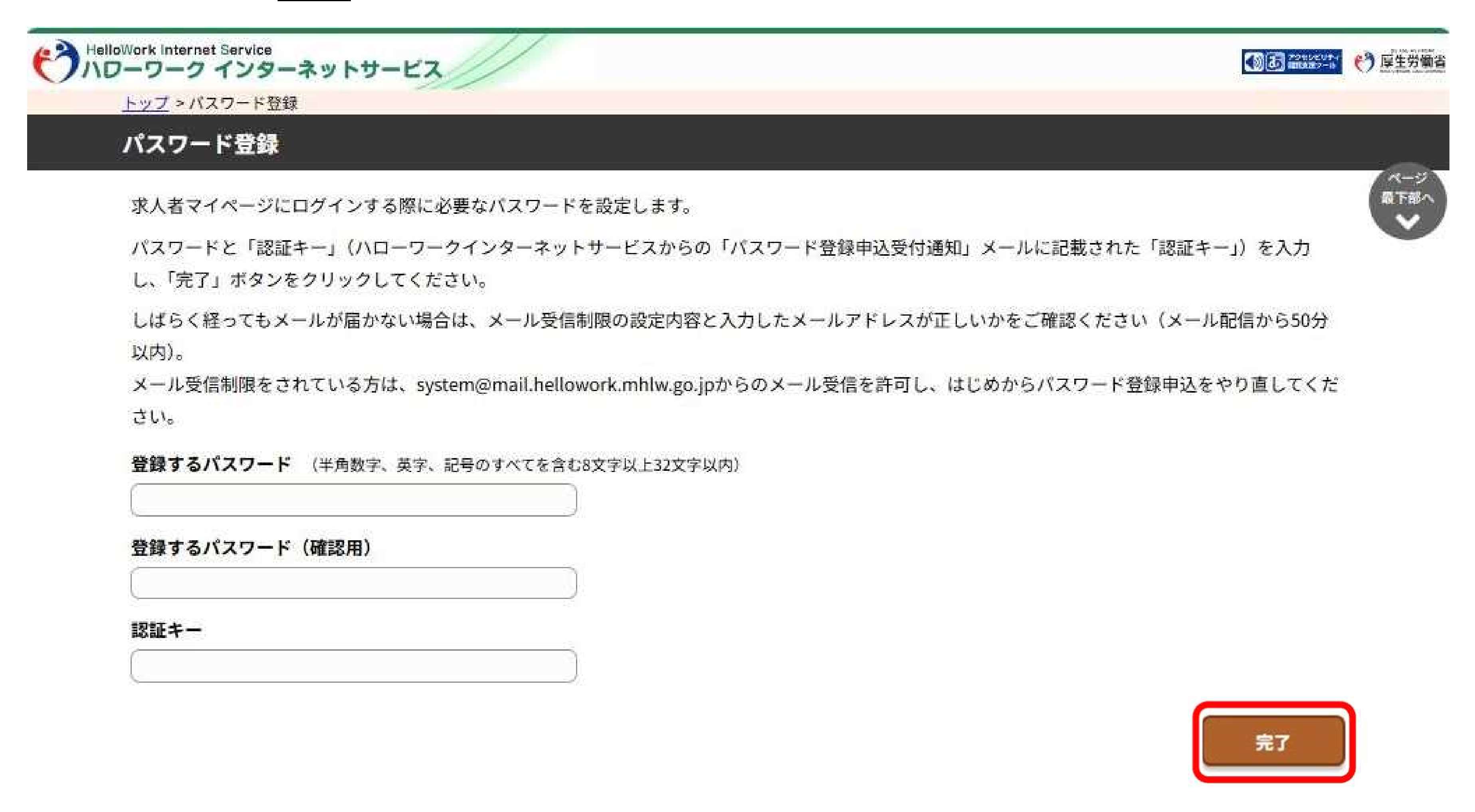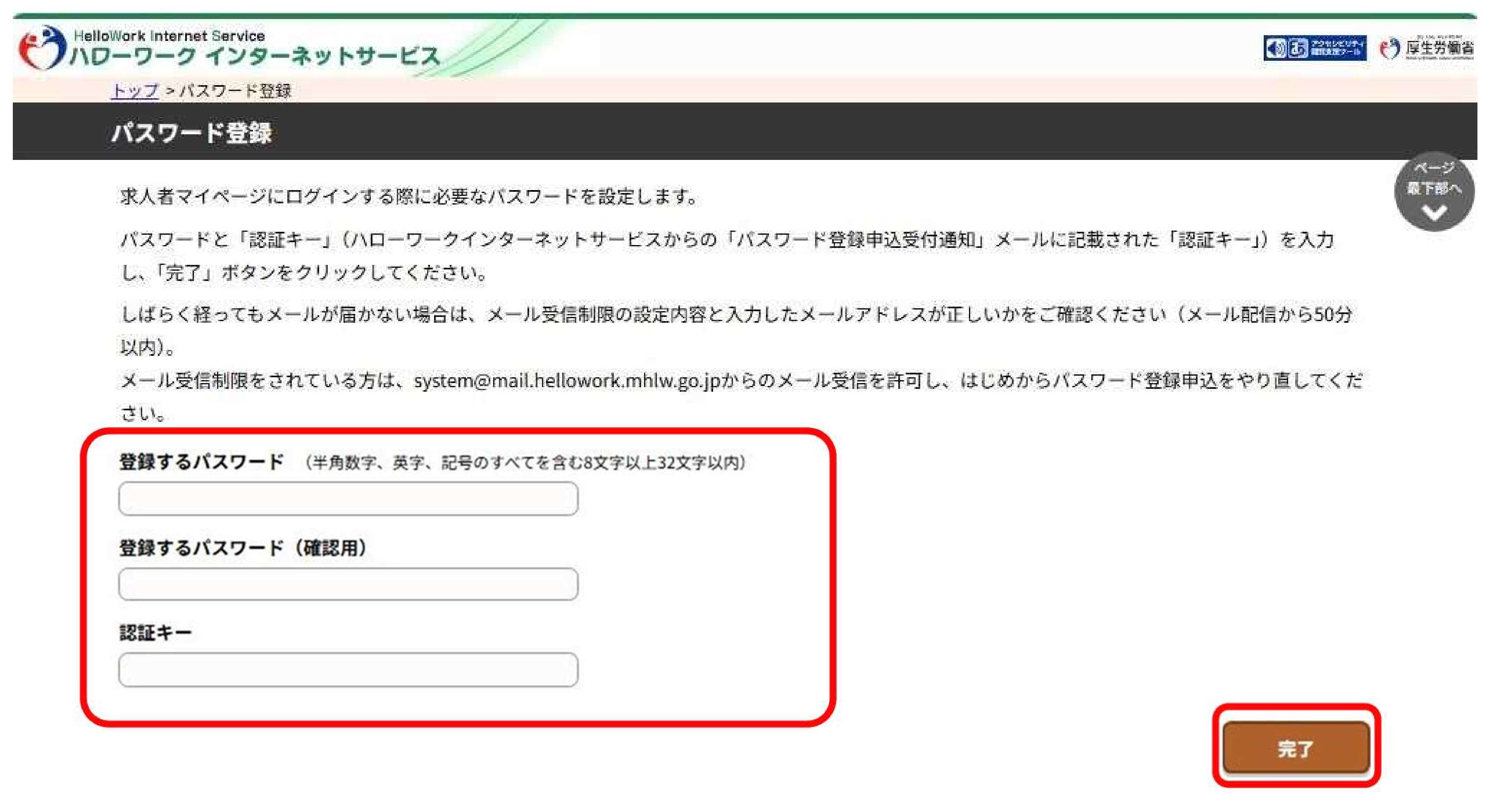 ●「登録するパスワード」およびメールアドレスへ届いた「認証キー」を入力後、完了。