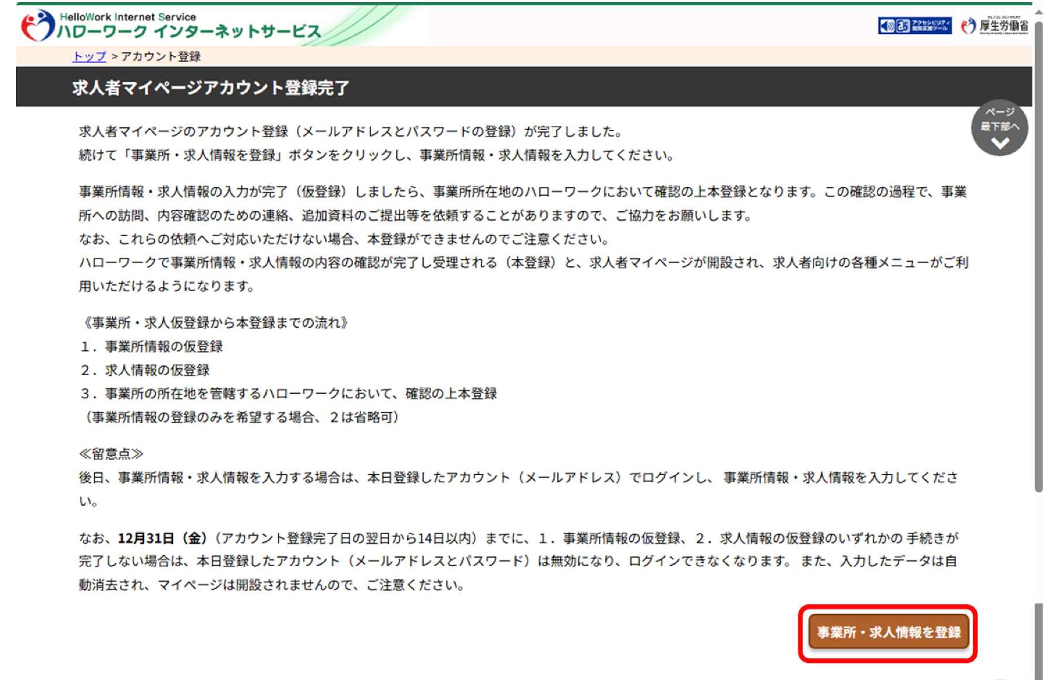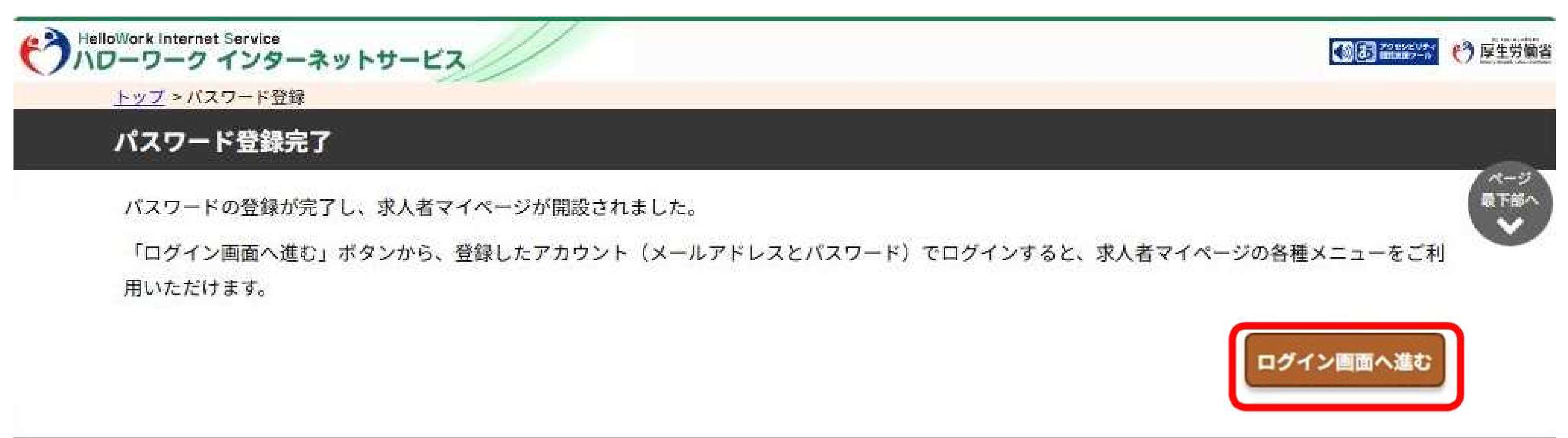 ●登録が完了すると「求人者マイページアカウント登録完了」画面が表示されます。
