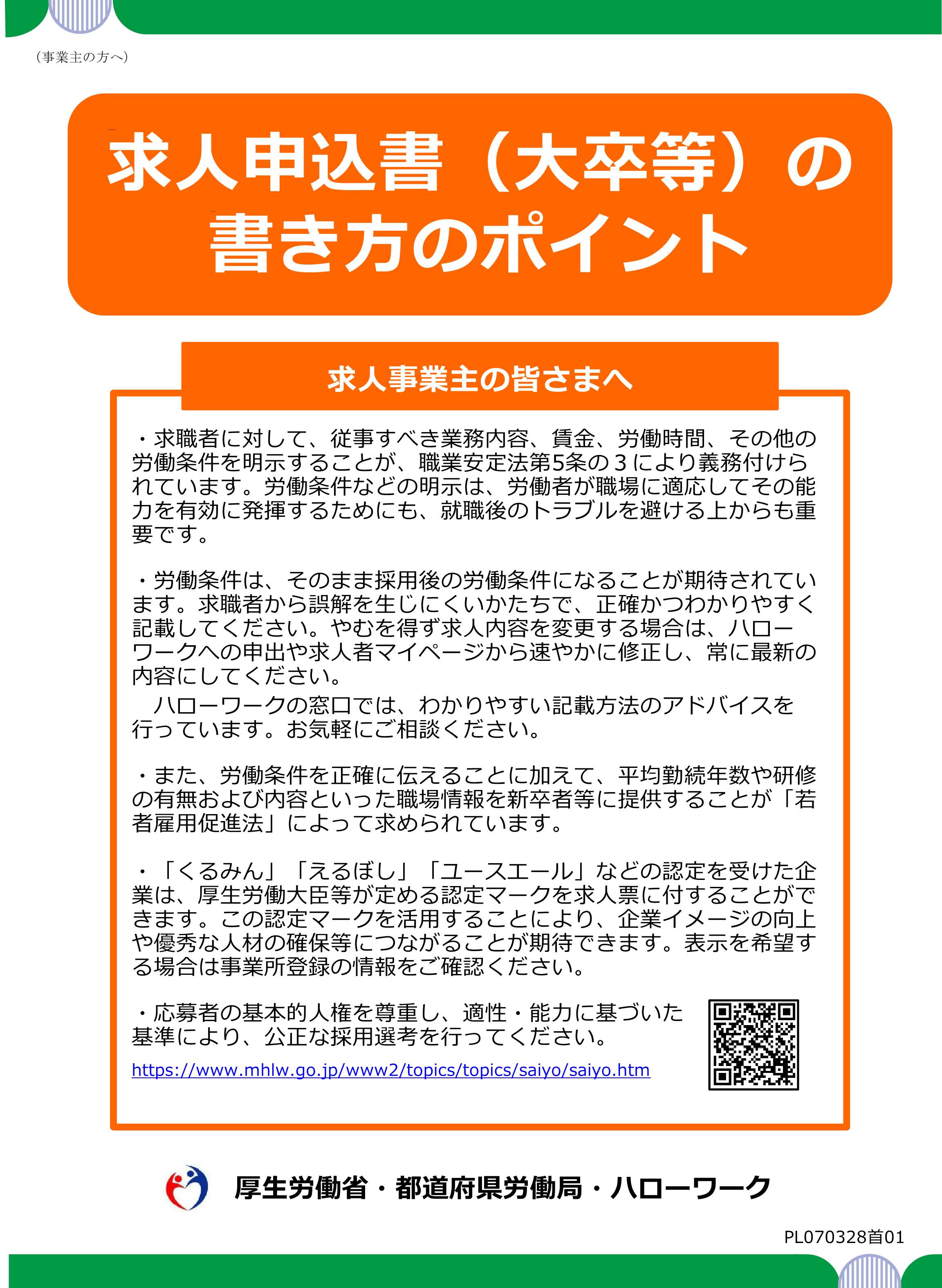 ↓下の求人申込書(大卒等)の書き方のポイントをご覧ください。(PDF)