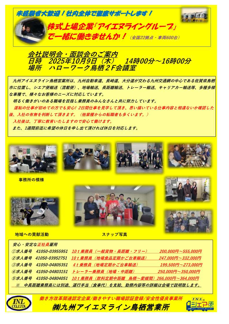 職種 :4トン・10トントラック乗務員、トレーラー乗務員