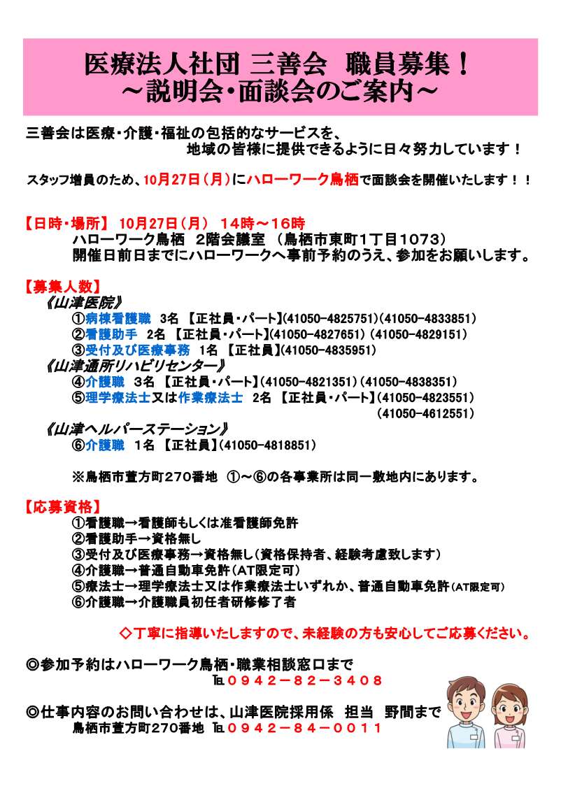 職種 :看護師(正・准)、看護助手、受付及び医療事務、介護職、療法士