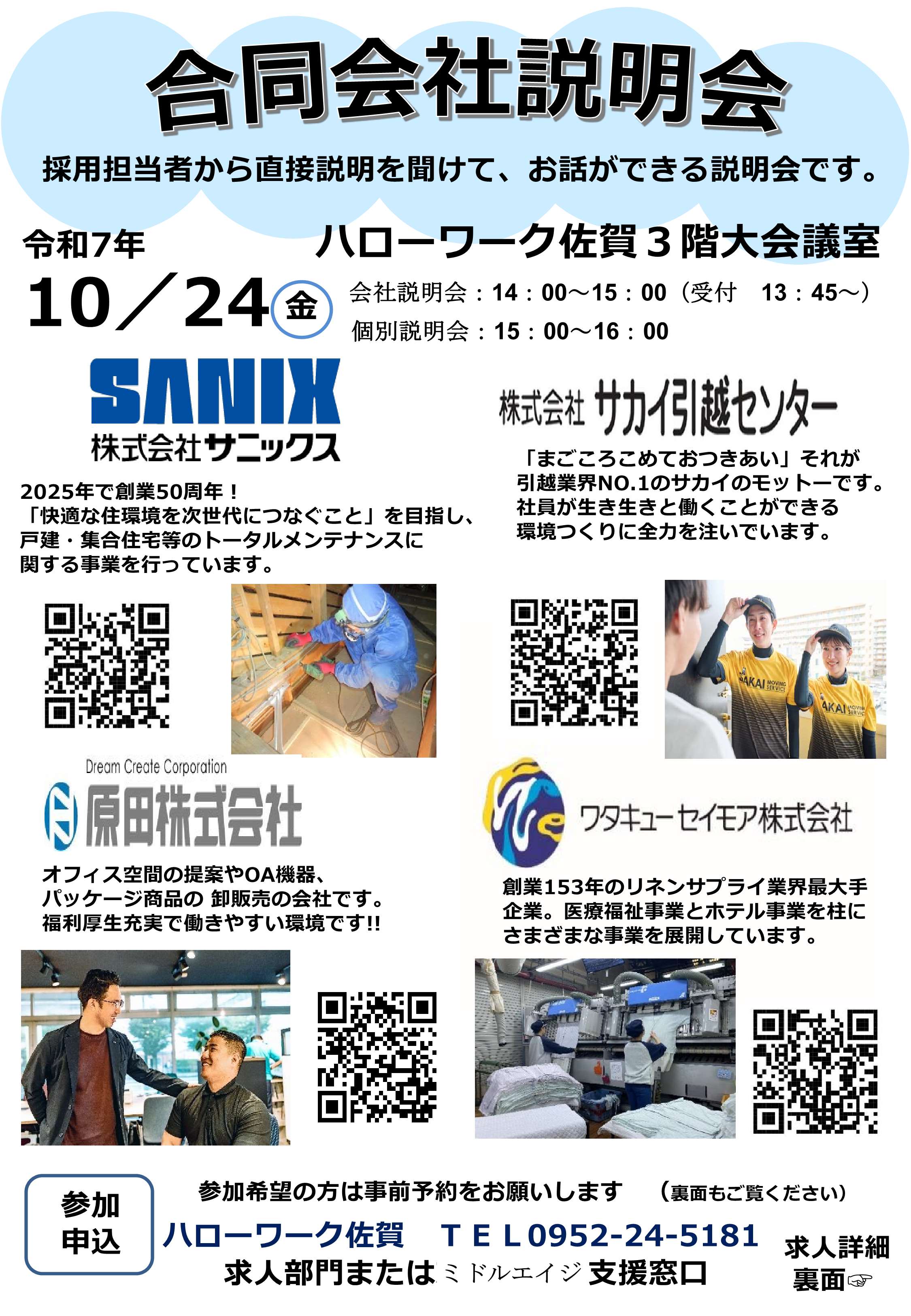 - 【10月24日】ハローワーク佐賀 合同会社説明会のお知らせ
